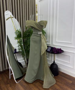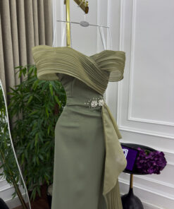 فستان سهرة لون زيتي