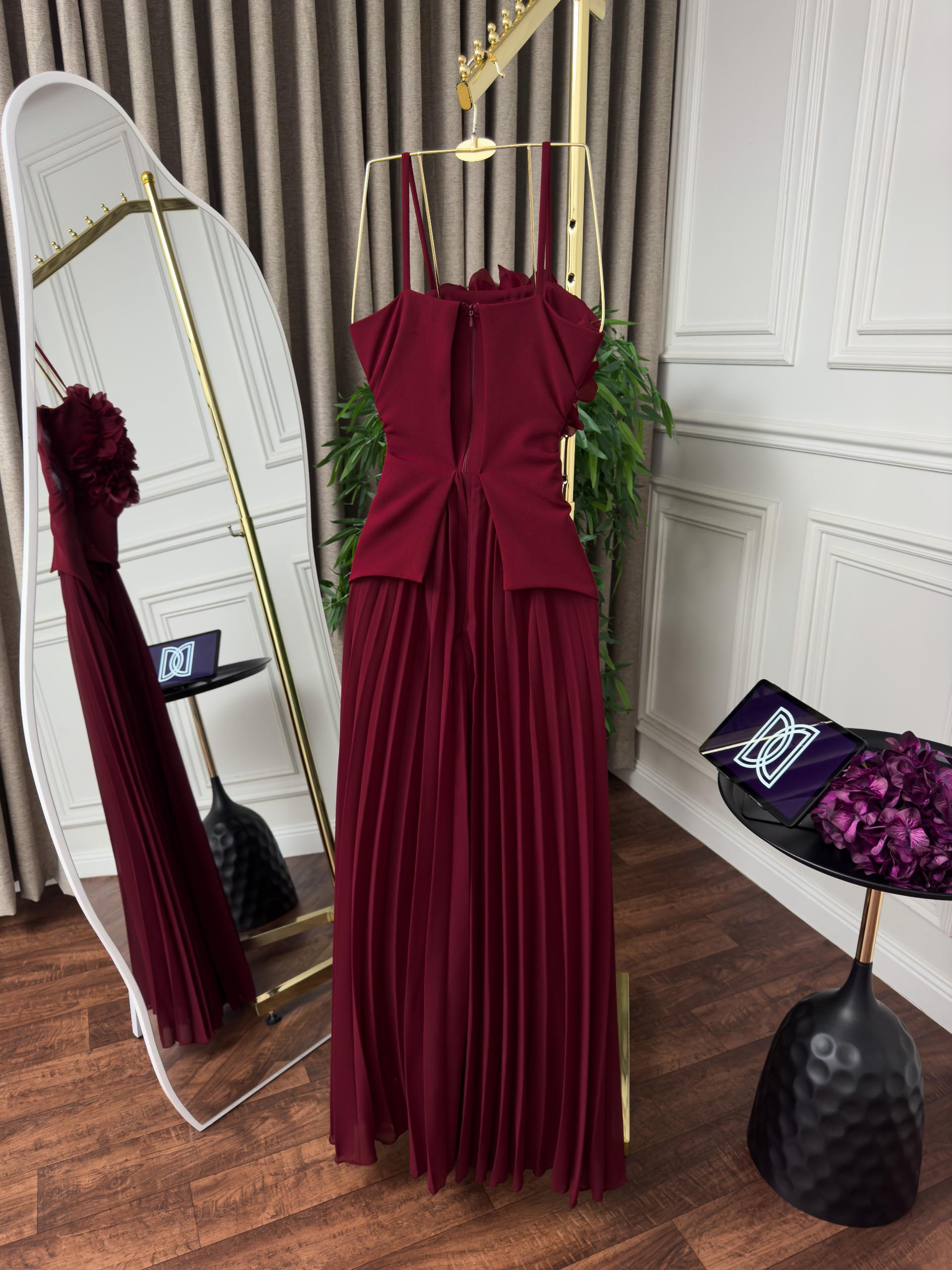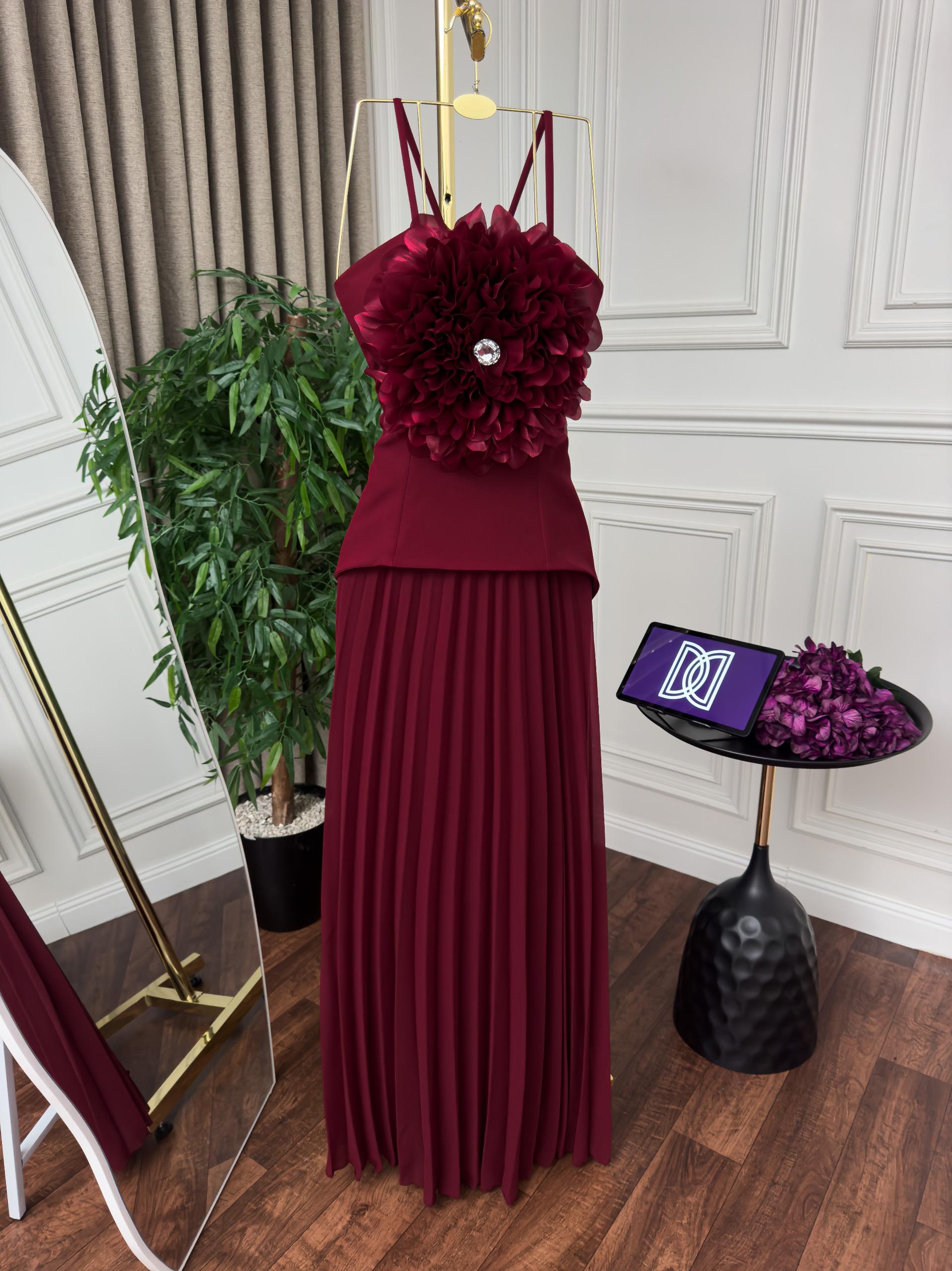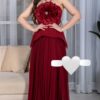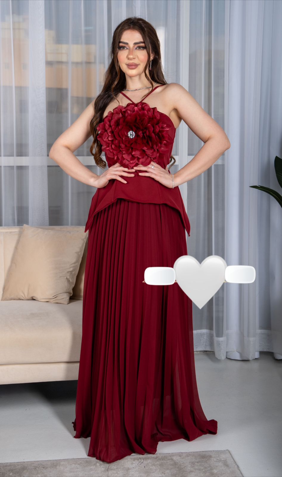 هل تبحثين عن إطلالة مميزة تجمع بين الأناقة والقوة؟ 👗 نقدم لكِ من متجرنا السعودي هذا الفستان العنابي الطويل بتصميمه الجذاب والمزين بوردة كبيرة ثلاثية الأبعاد على الصدر، ليكون خيارك الأمثل للسهرات الراقية وحفلات المساء