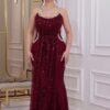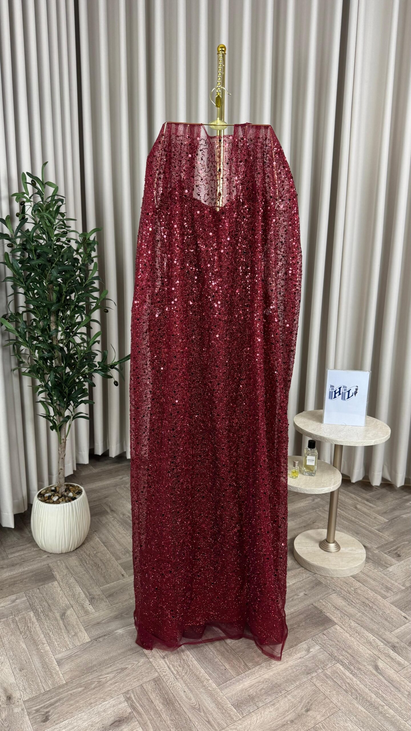 فستان سهرة عنّابي لامع من روزيتا | فخامة أنثوية تسرق الأنظار