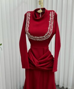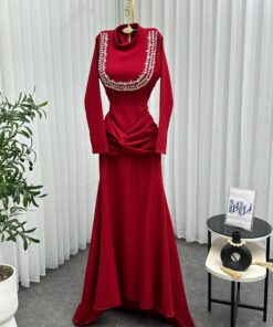 فستان سهرة لون عودي طويل