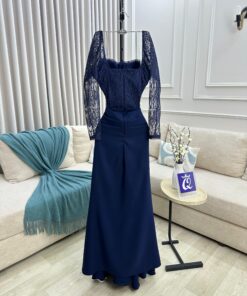 فساتين سهرة كحلي فخمة بأكمام دانتيل