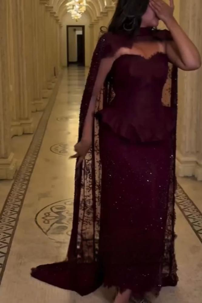 فستان سهرة لون نبيتي