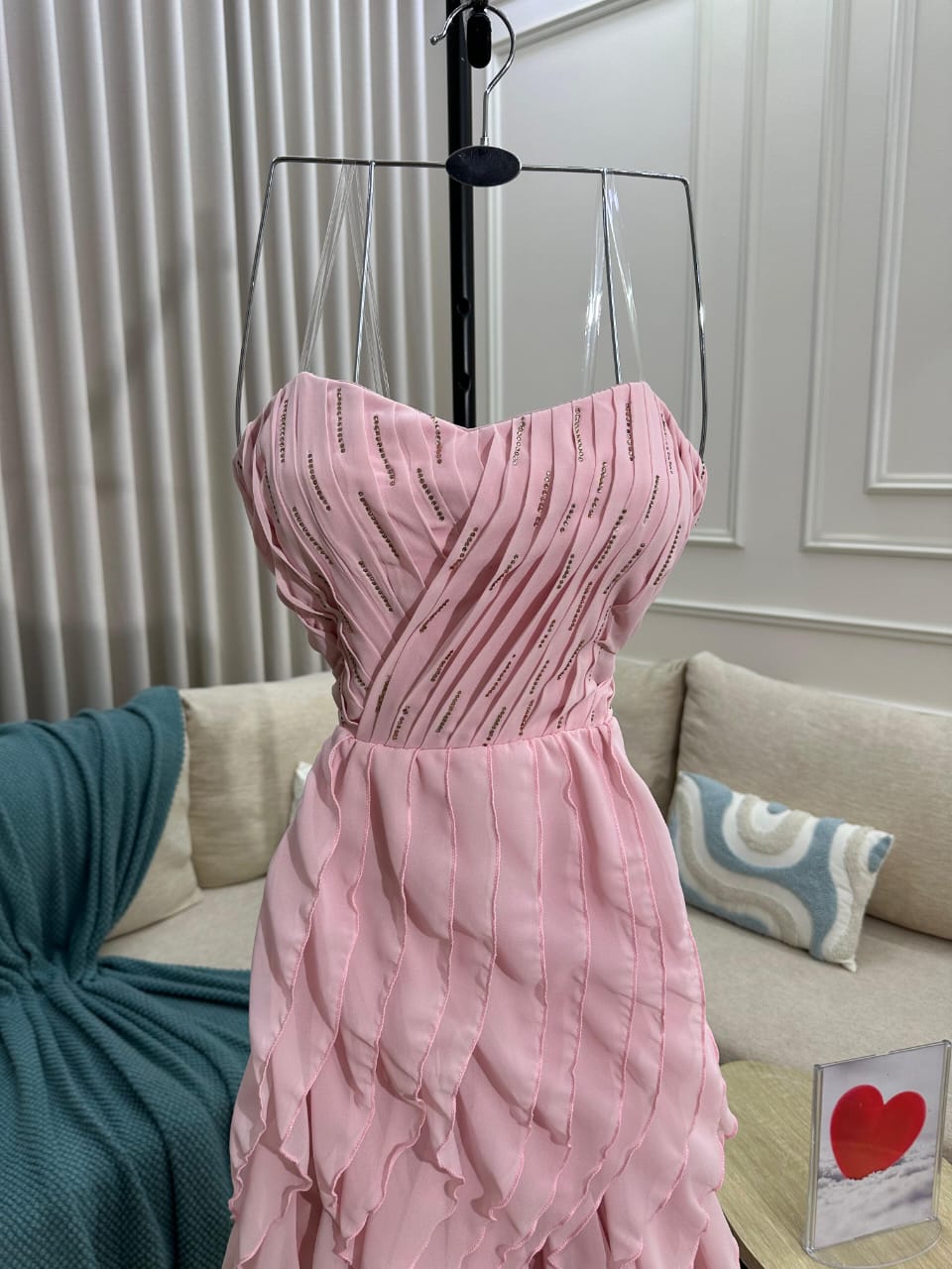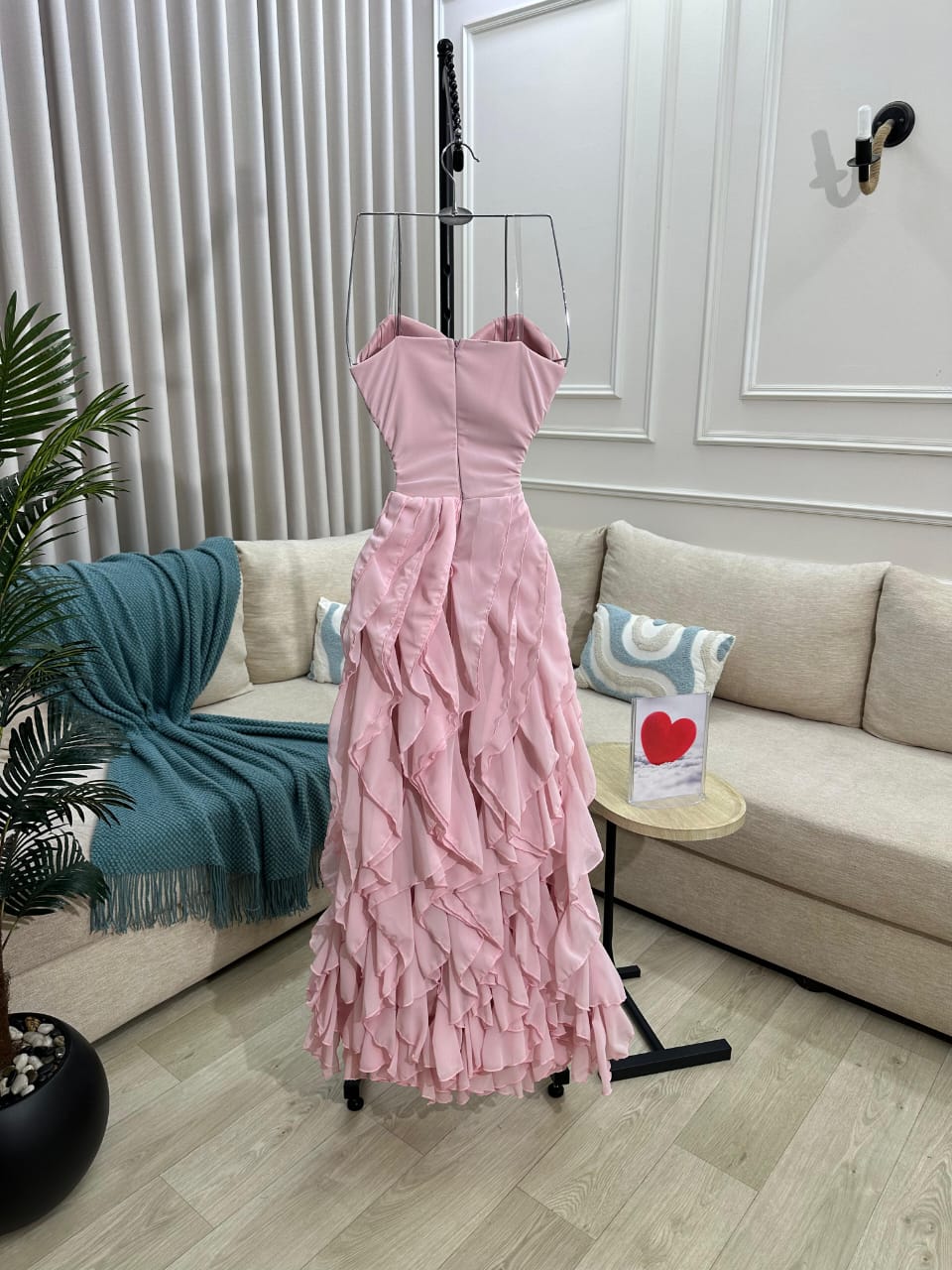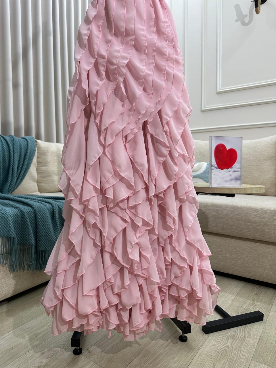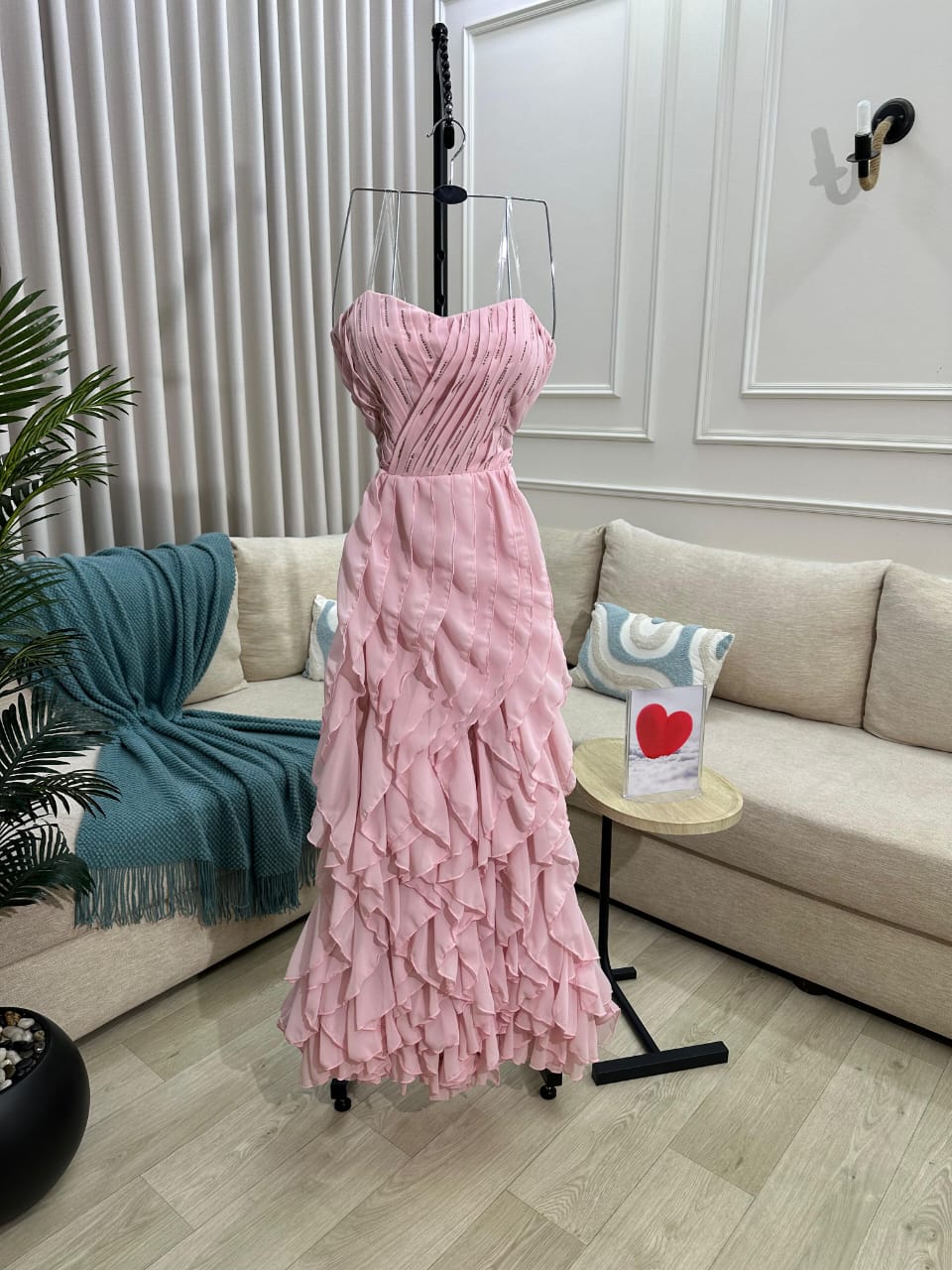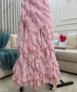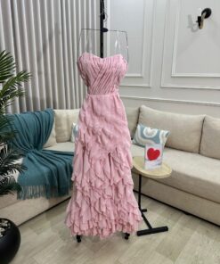 إذا كنتِ تبحثين عن إطلالة تجمع بين الرقة والفخامة، فإن الفستان الوردي الناعم بالكشكش هو خيارك المثالي. تسوقيه الآن من متجرنا السعودي وكوني محط الأنظار في كل مناسبة.
