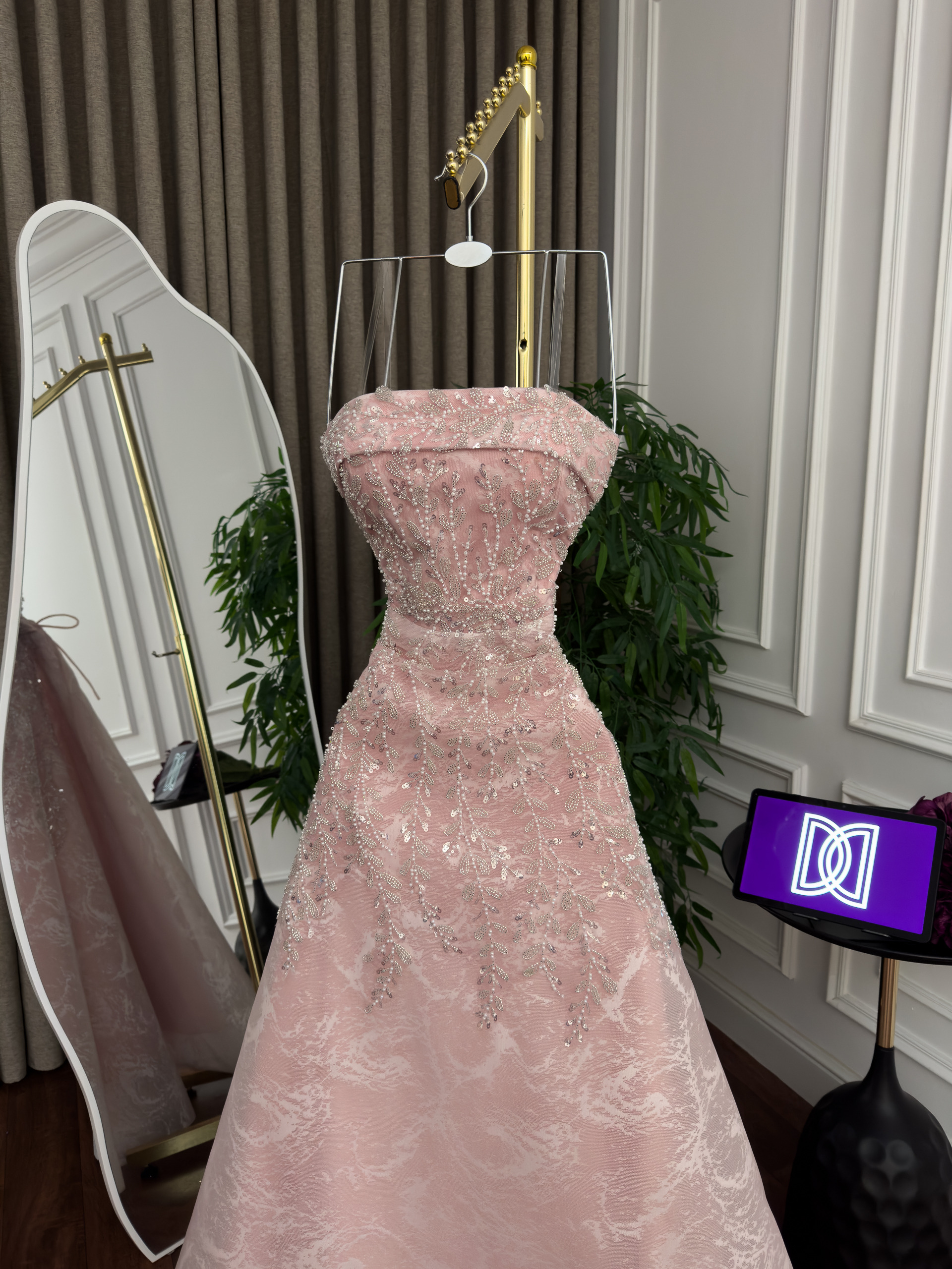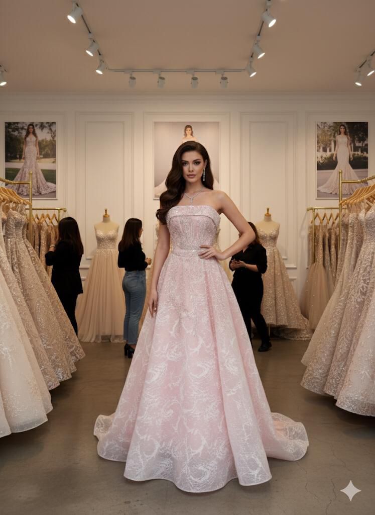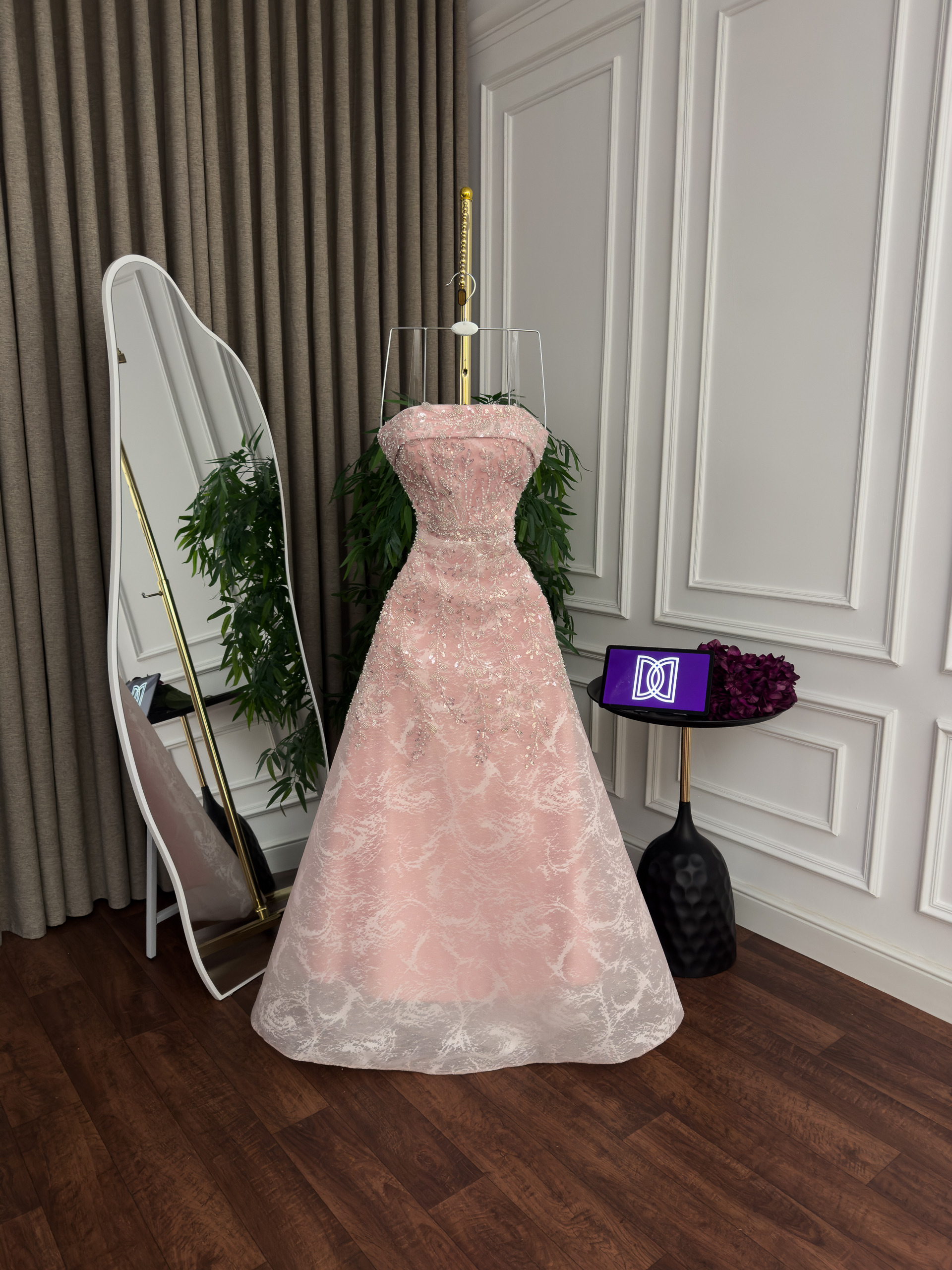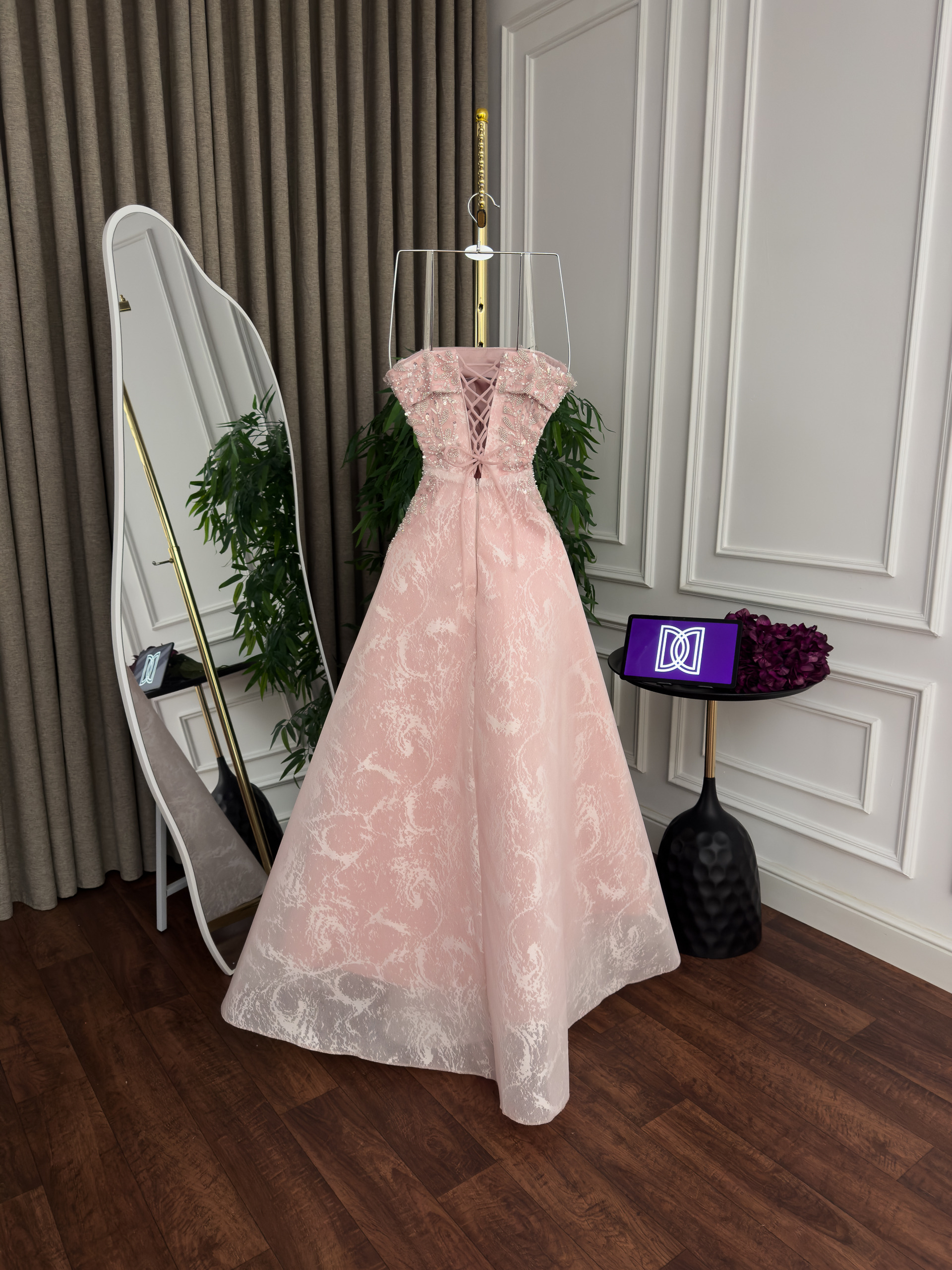 فستان سهره دانتيل وبطانة وجيبون كلفه تطريز