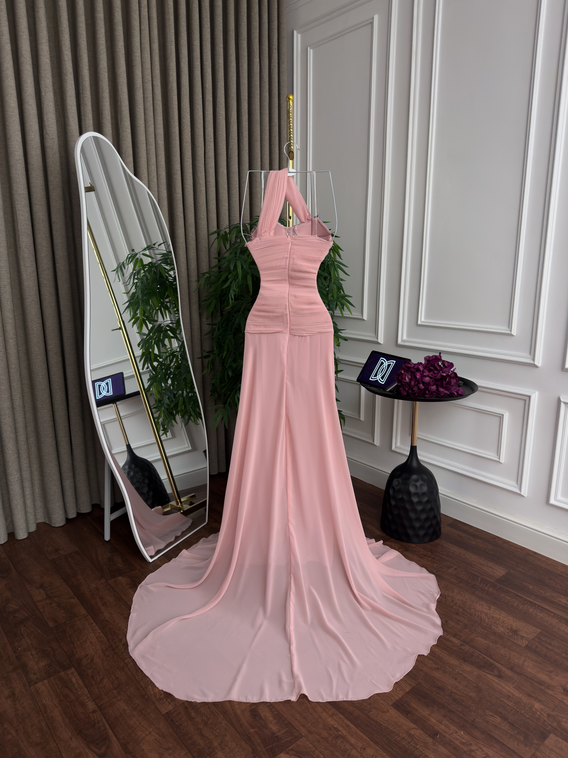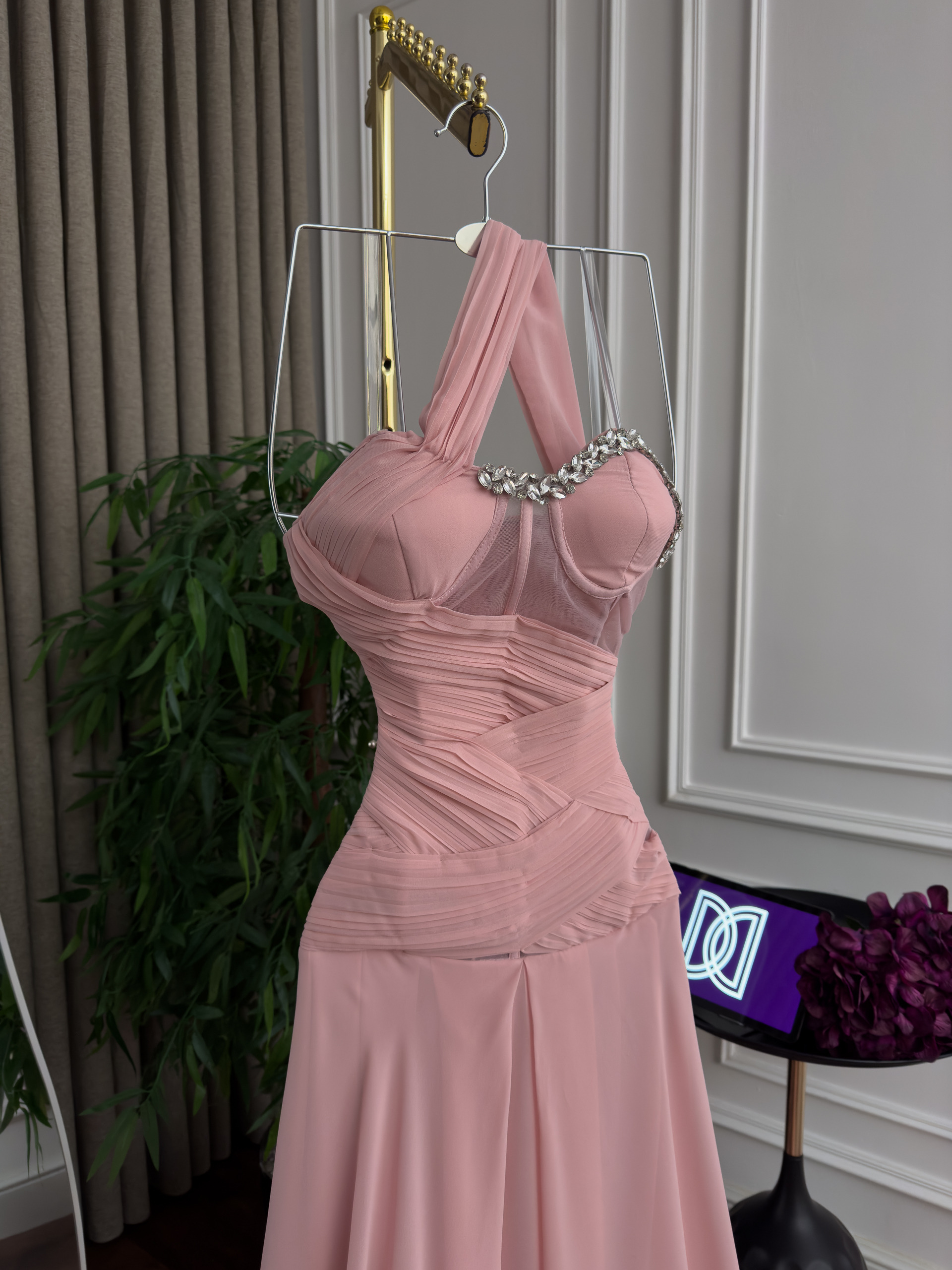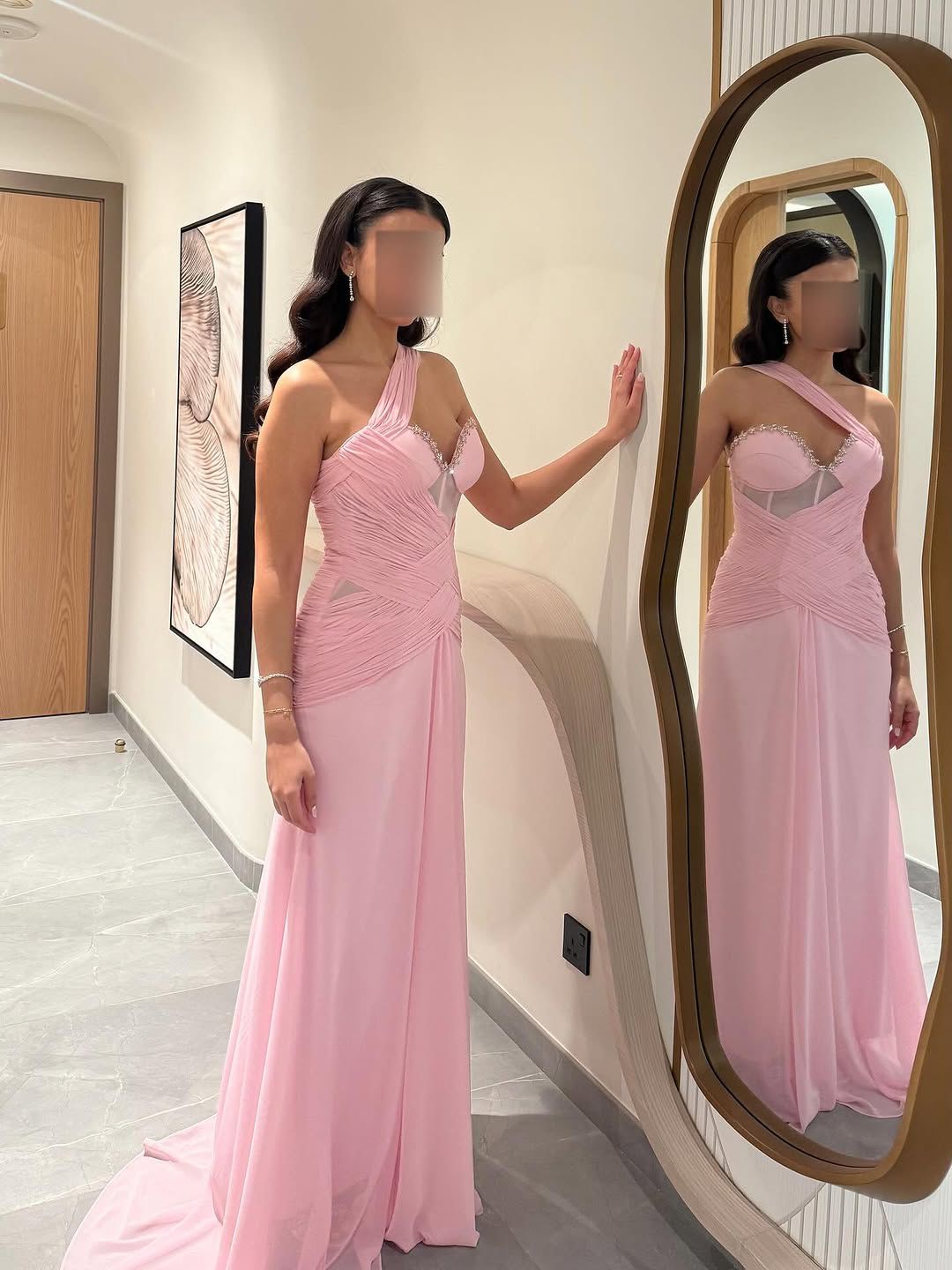 فستان سهرة وردي ناعم بتصميم جذاب من متجر روزيتا