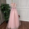 الفستان أنيق ورومانسي، يتميز بلونه الوردي الفاتح الذي يضفي لمسة ناعمة وأنثوية. يأتي بقصة طويلة وواسعة تنساب بنعومة، مما يمنحه طابعًا أميريًا راقياً. الجزء العلوي مزين بتطريزات دقيقة من الخرز واللؤلؤ، إضافة إلى ورود ثلاثية الأبعاد بلون وردي داكن، مما يضيف عمقاً وجمالاً للتصميم. الأشرطة الرفيعة الشفافة تعزز جمالية الكتف المكشوف وتمنح الفستان ثباتًا دون التأثير على شكله العام. فستان مثالي للمناسبات الراقية مثل الخطوبة أو حفلات السهرة، ويجمع بين الأناقة والنعومة في آنٍ واحد.