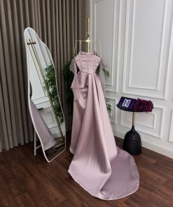 فستان سهره كم ميكادو كلوش تطريز يدوي