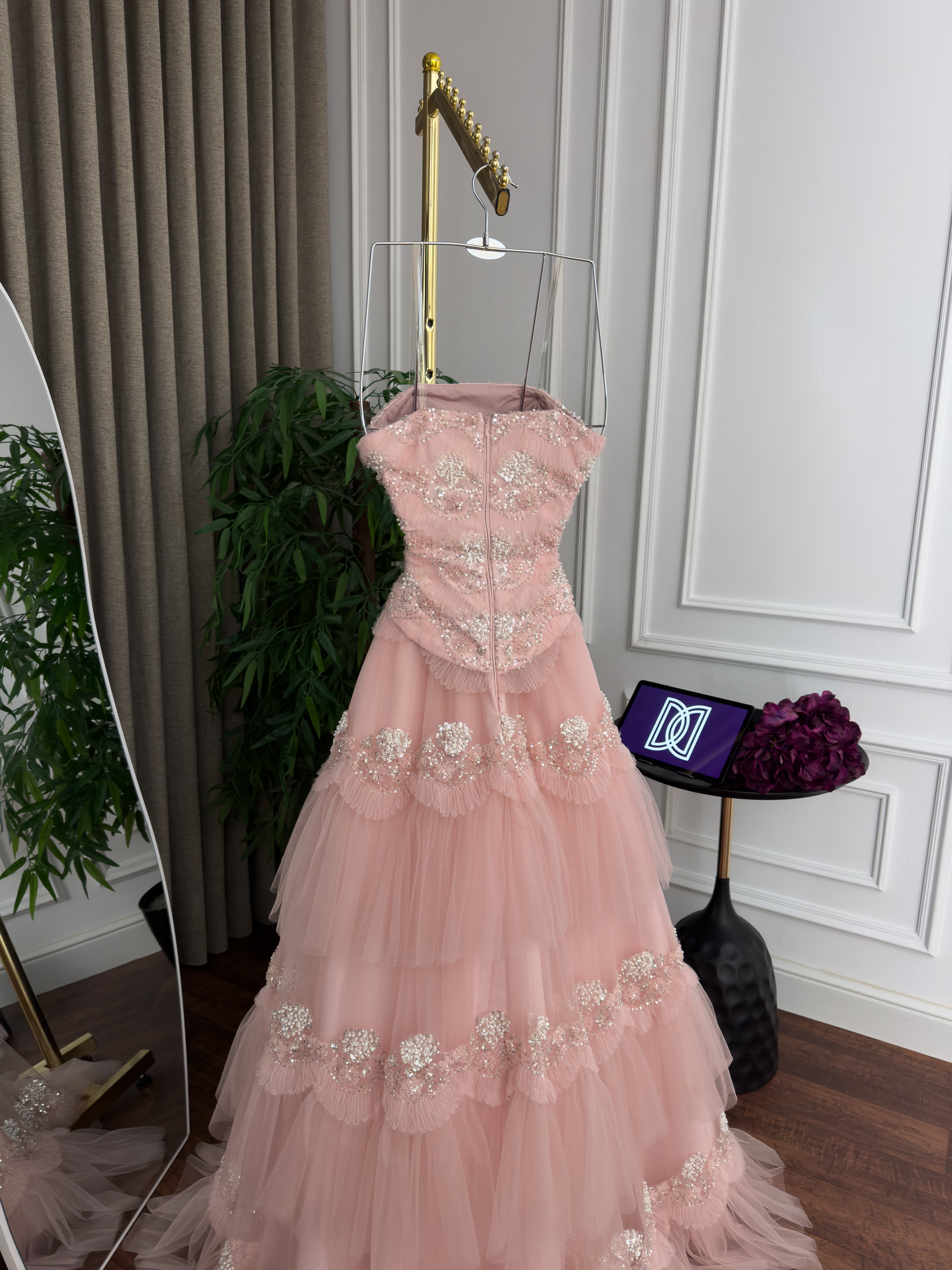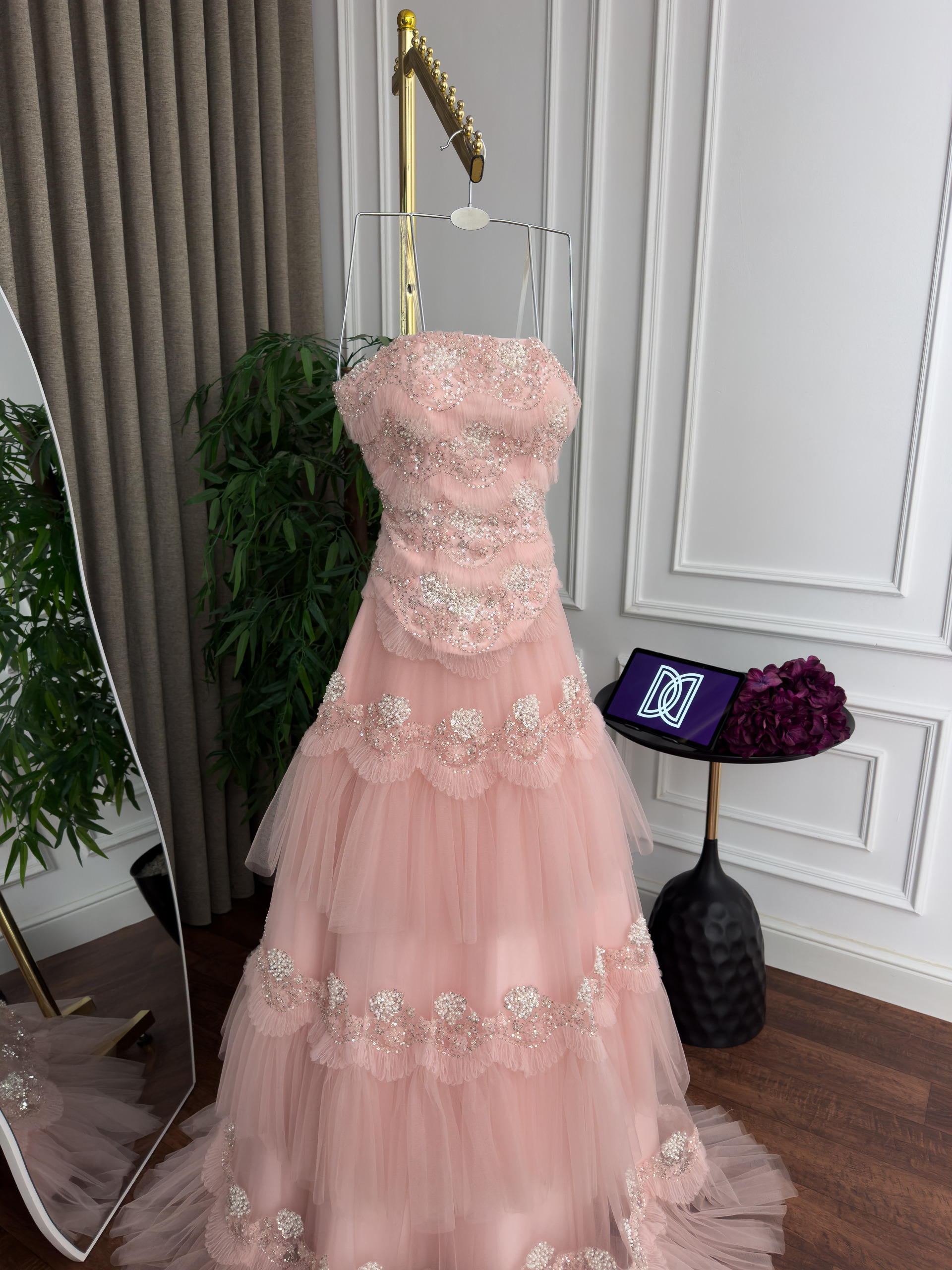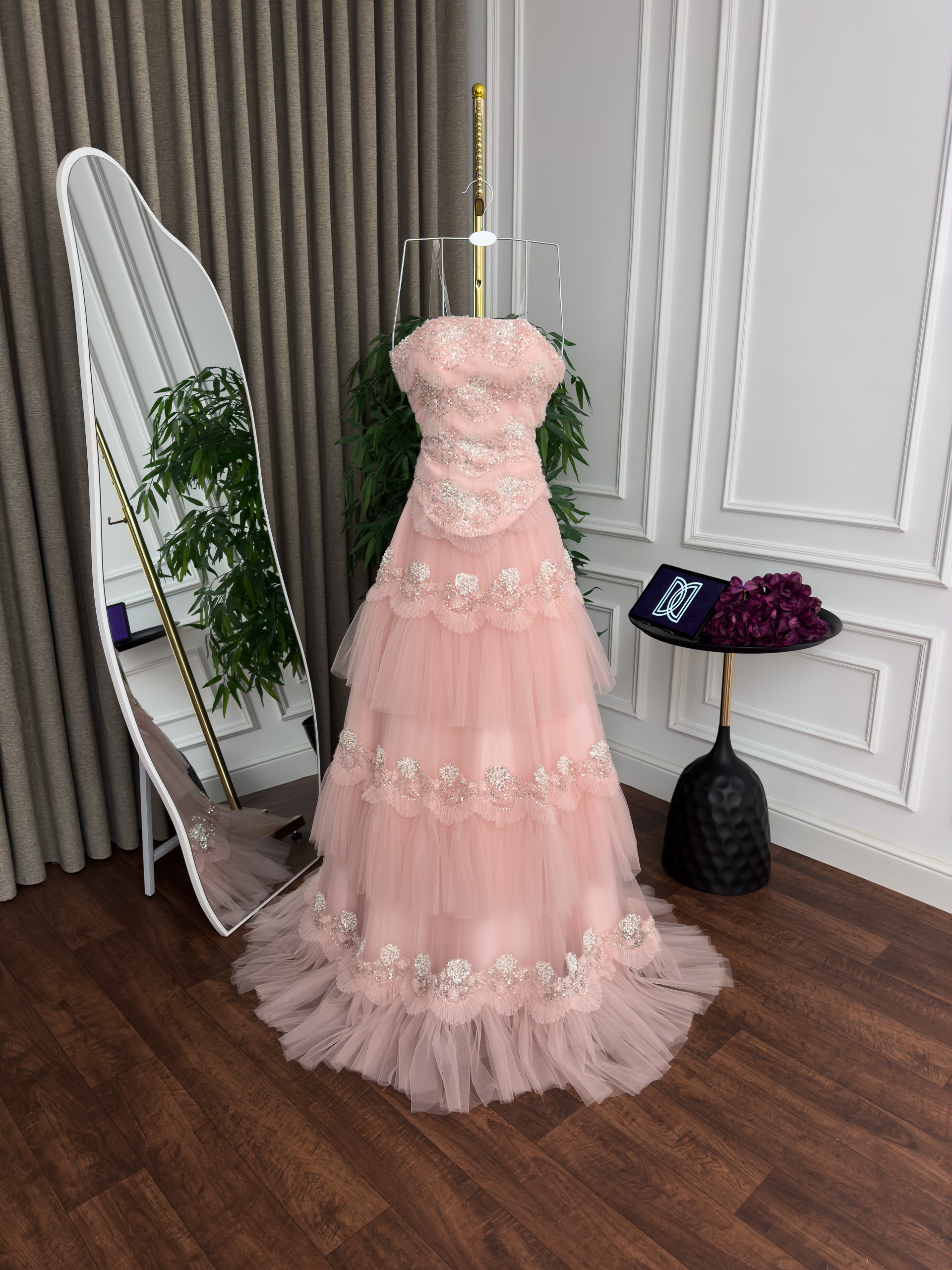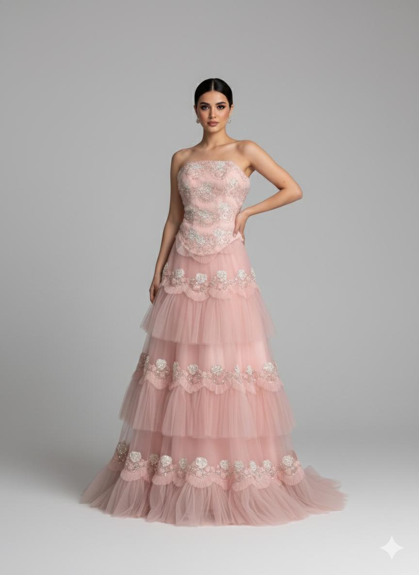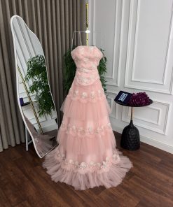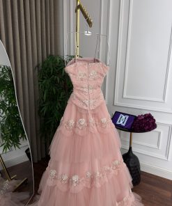 فستان سهره تل كلفه تطريز ورد خرز ذيل كلوش جازار