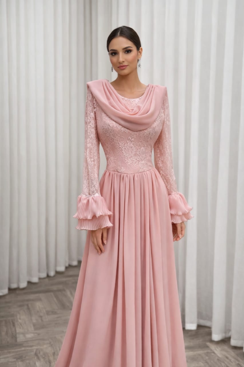 فستان سهرة لون وردي