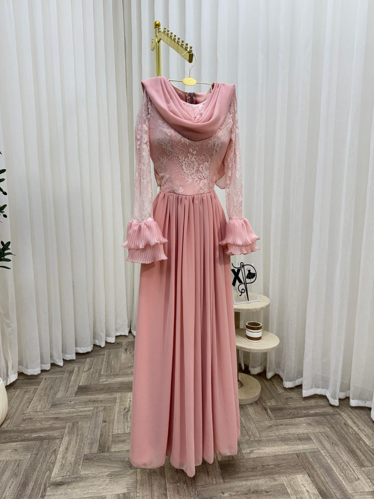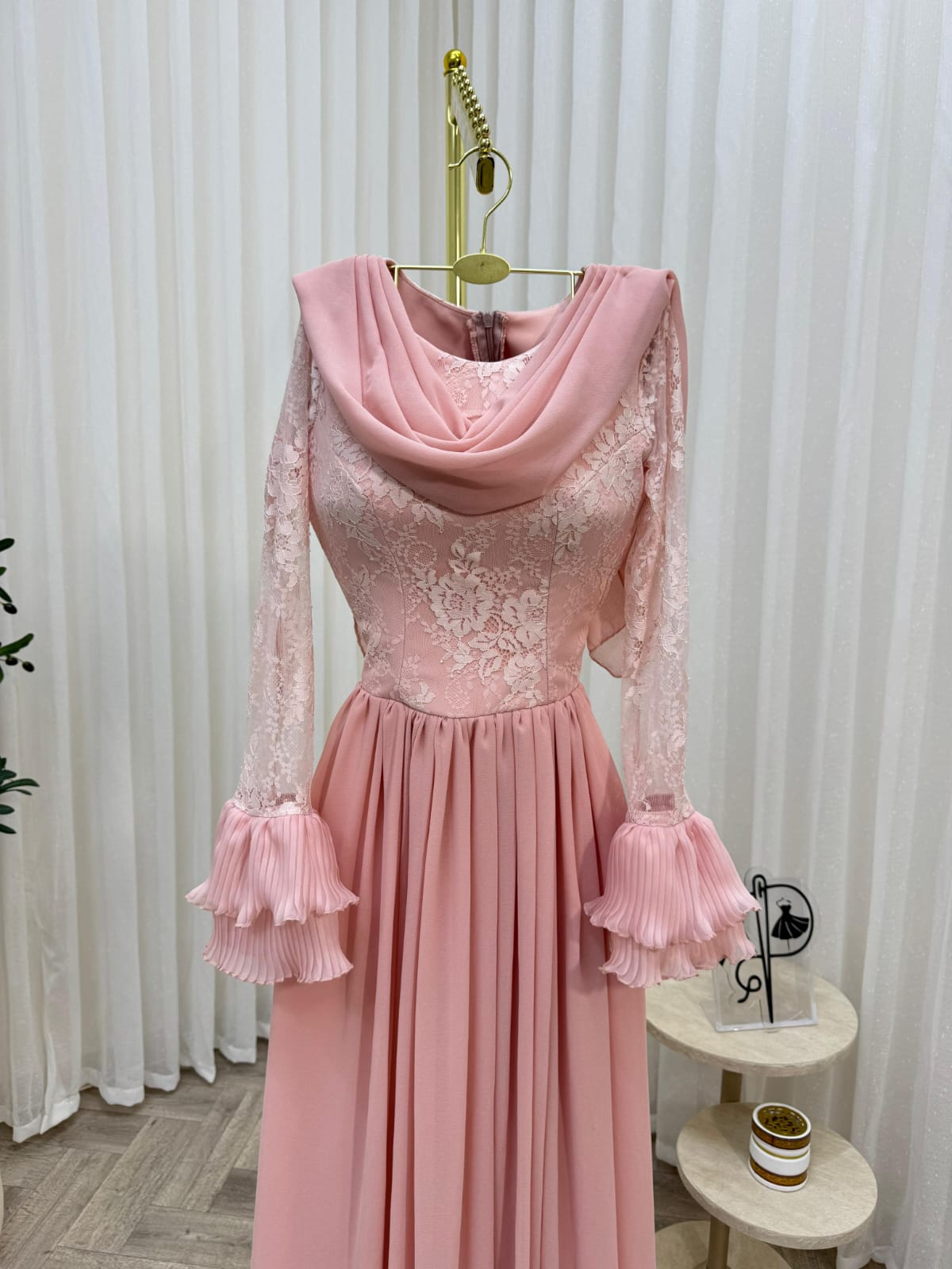 - نوع القماش _شيفون مع دانتيل