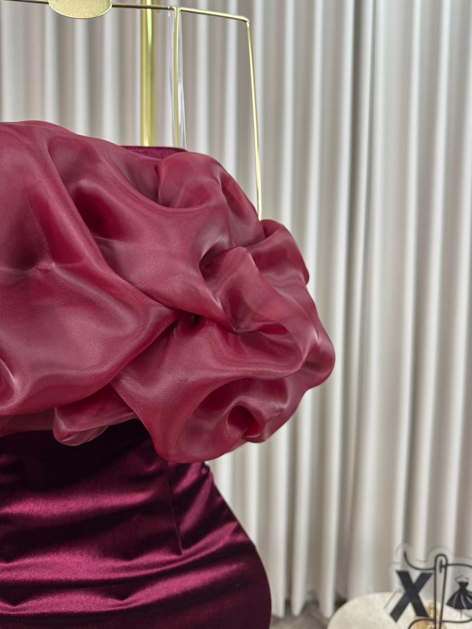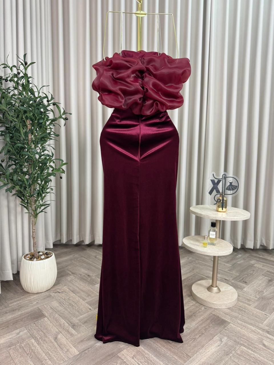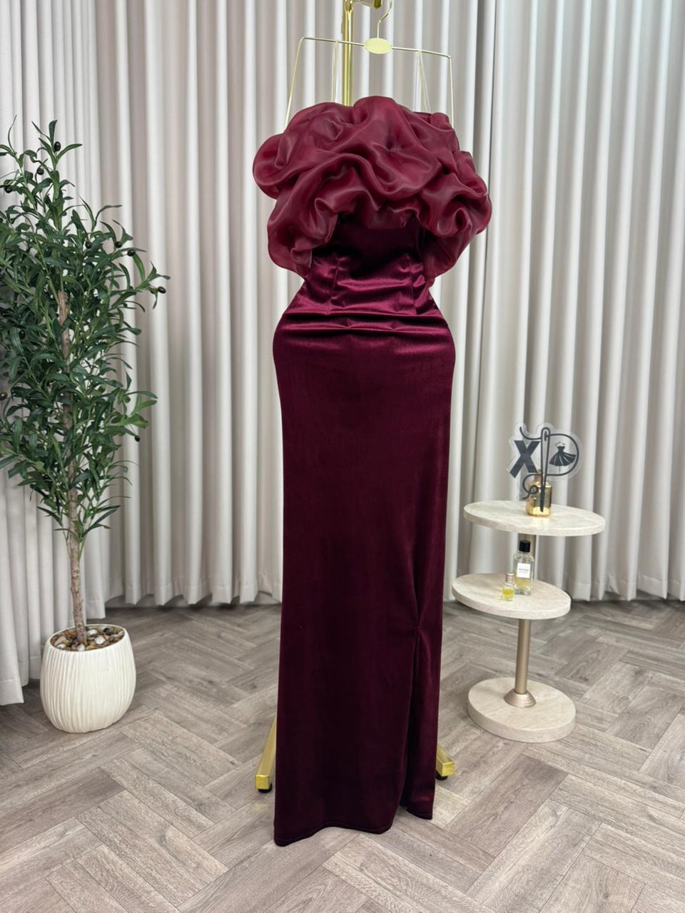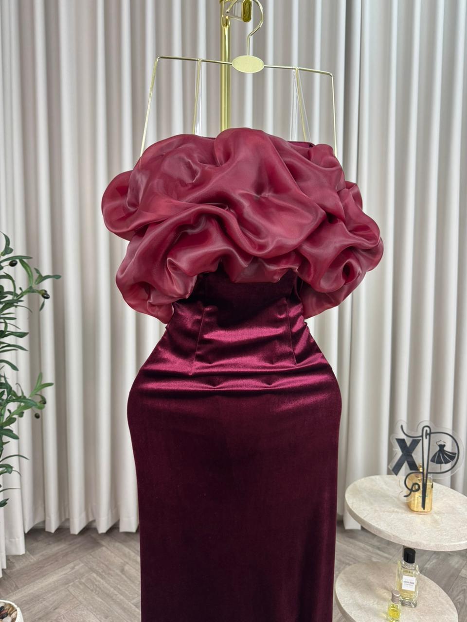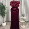 فستان سهرة عنابي مخمل فخم من روزيتا – إطلالة ملكية تأسر الأنظار