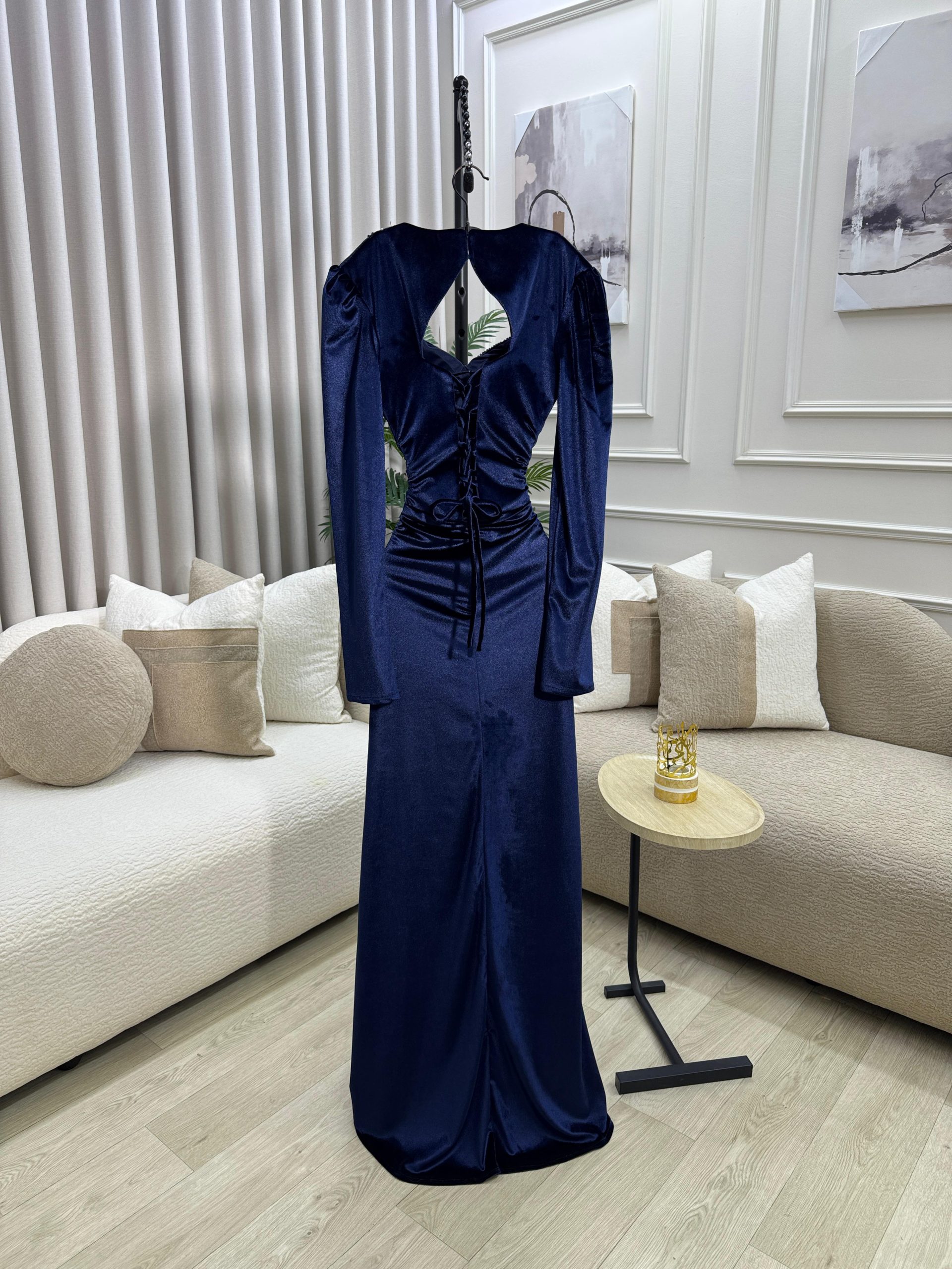 فستان سهرة مخمل كحلي فاخر من متجر روزيتا السعودية