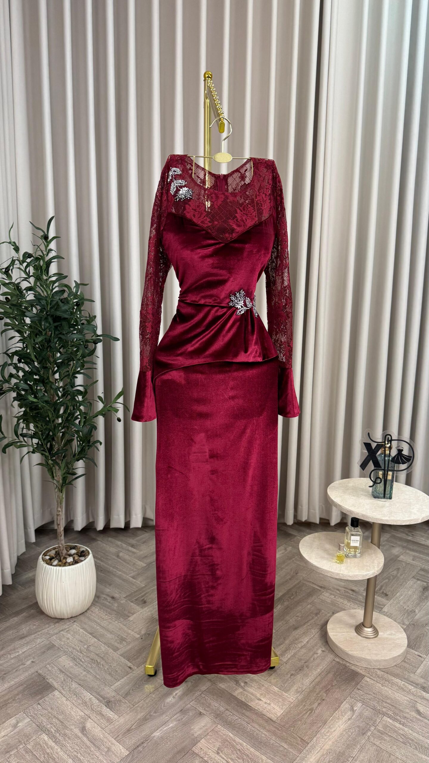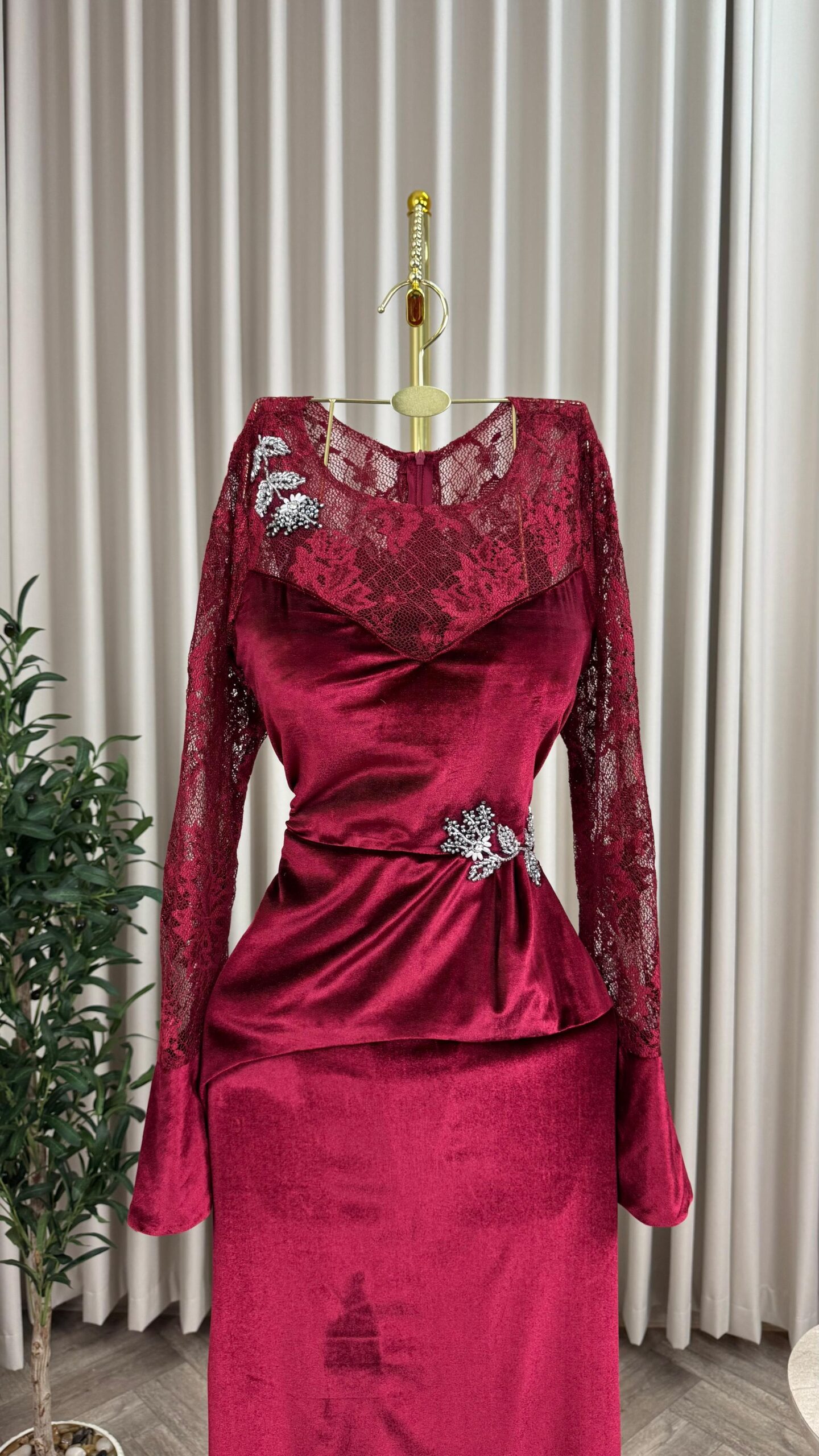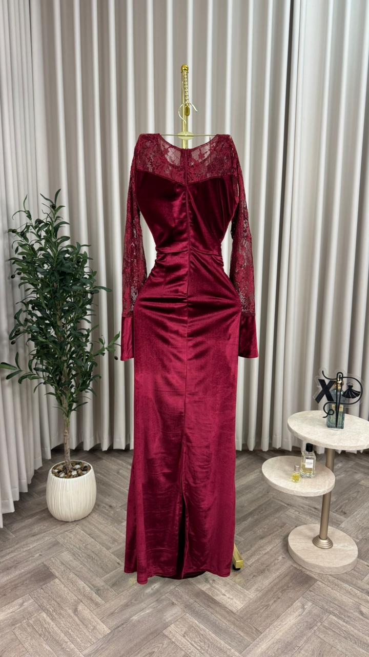 فستان سهرةنوع القماش _ مخمل علا دانتيل