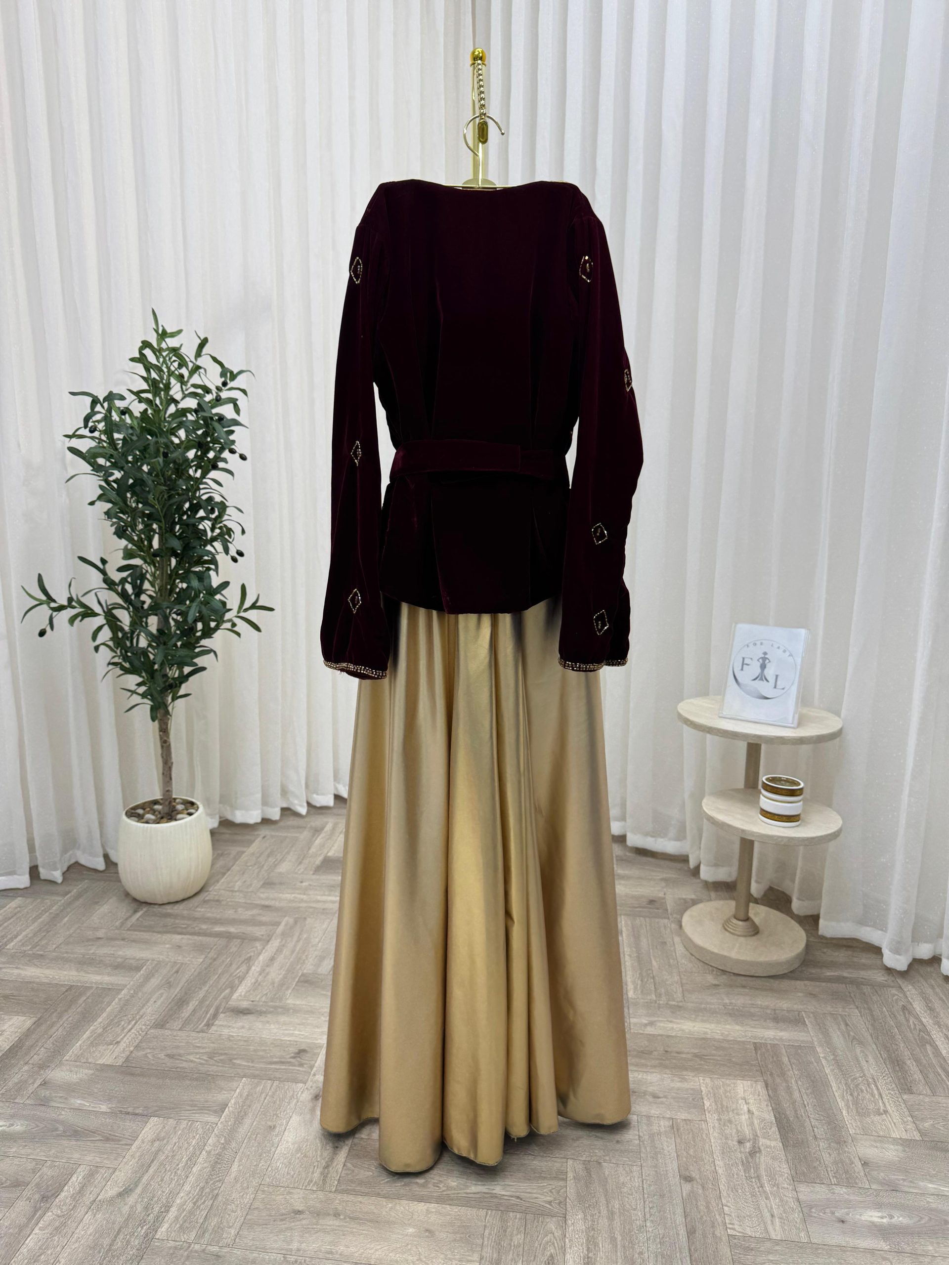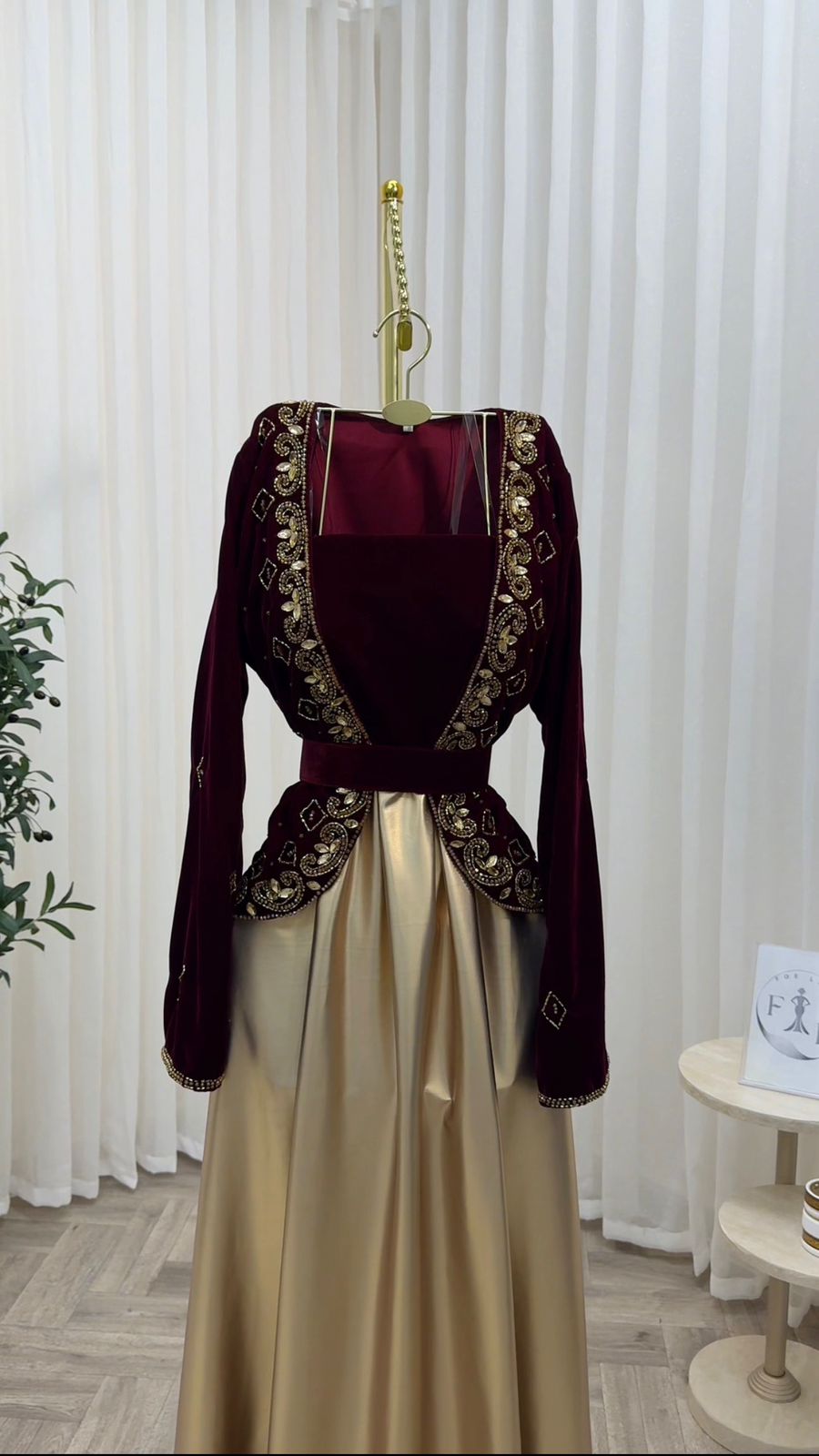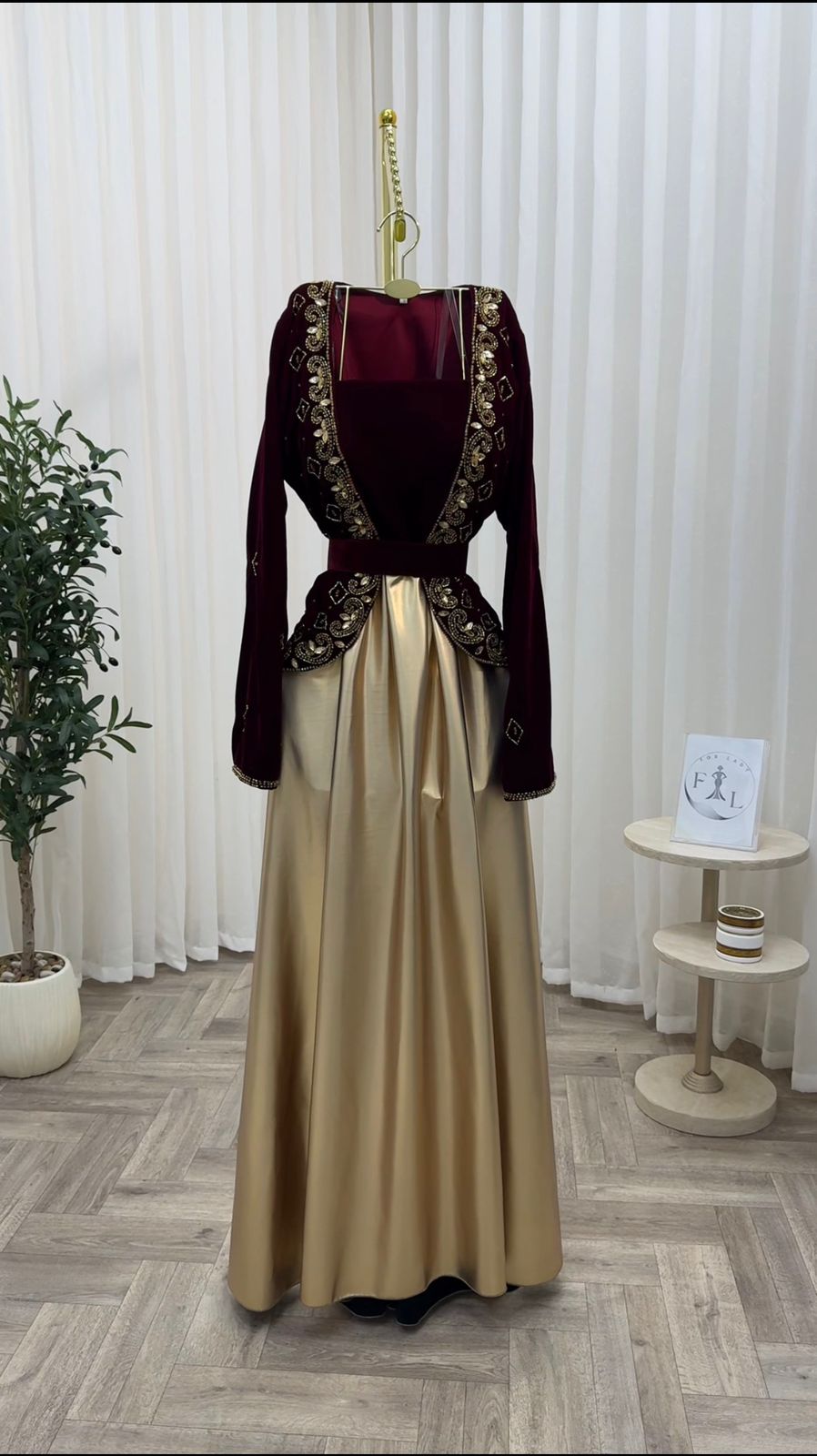 نوع القماش _ مخمل تطريز يدوي +طلس