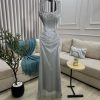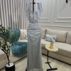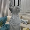 فستان سهرة مزخرف بالخرز اللامع الون الفضي