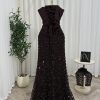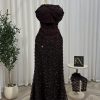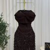 فستان سهرة مزخرف بالخرز بلون البني الداكن
