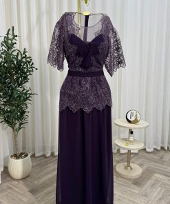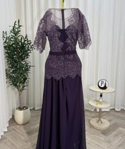 فستان سهرة مزخرف بالخرز تصميم أنثوي وأنيق للمناسبات الراقية