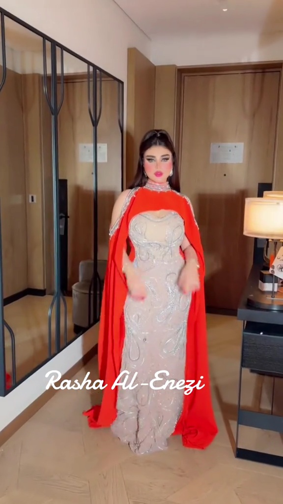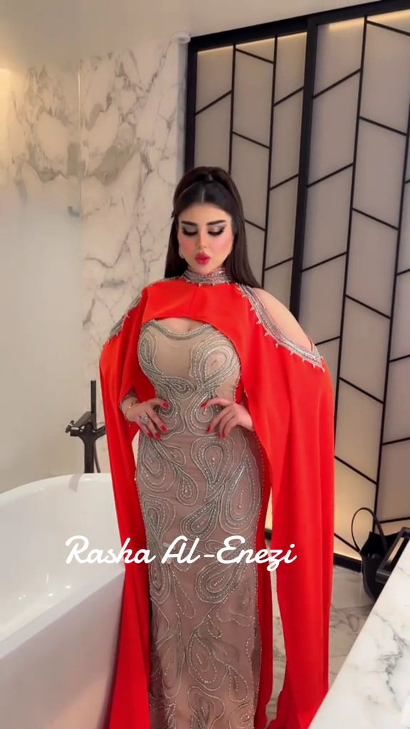 فستان سهرة مطرز مع كاب أحمر فاخر من متجر روزيتا السعودي