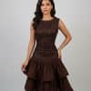 يتميز بتطريزات لامعة أنيقة على الجزء العلوي، مع تصميم ثنائي اللون يبرز جمال القوام ويضيف لمسة عصرية راقية. القصة الانسيابية مع تفاصيل القماش المتداخلة تعطي حركة جذابة وإطلالة فخمة تخطف الأنظار.