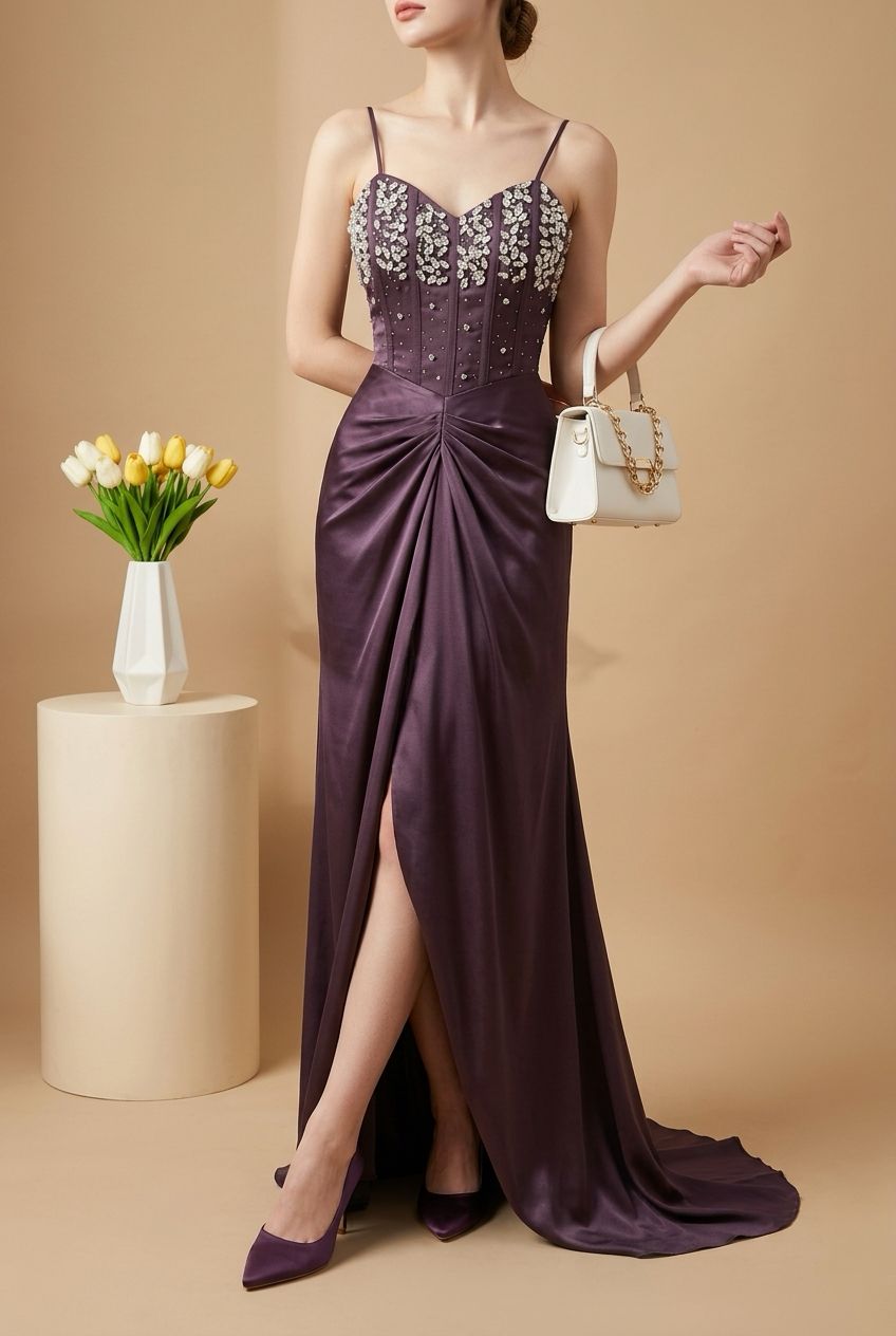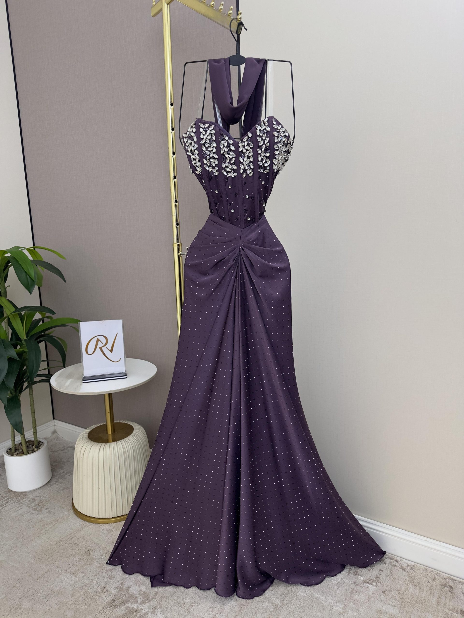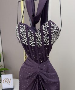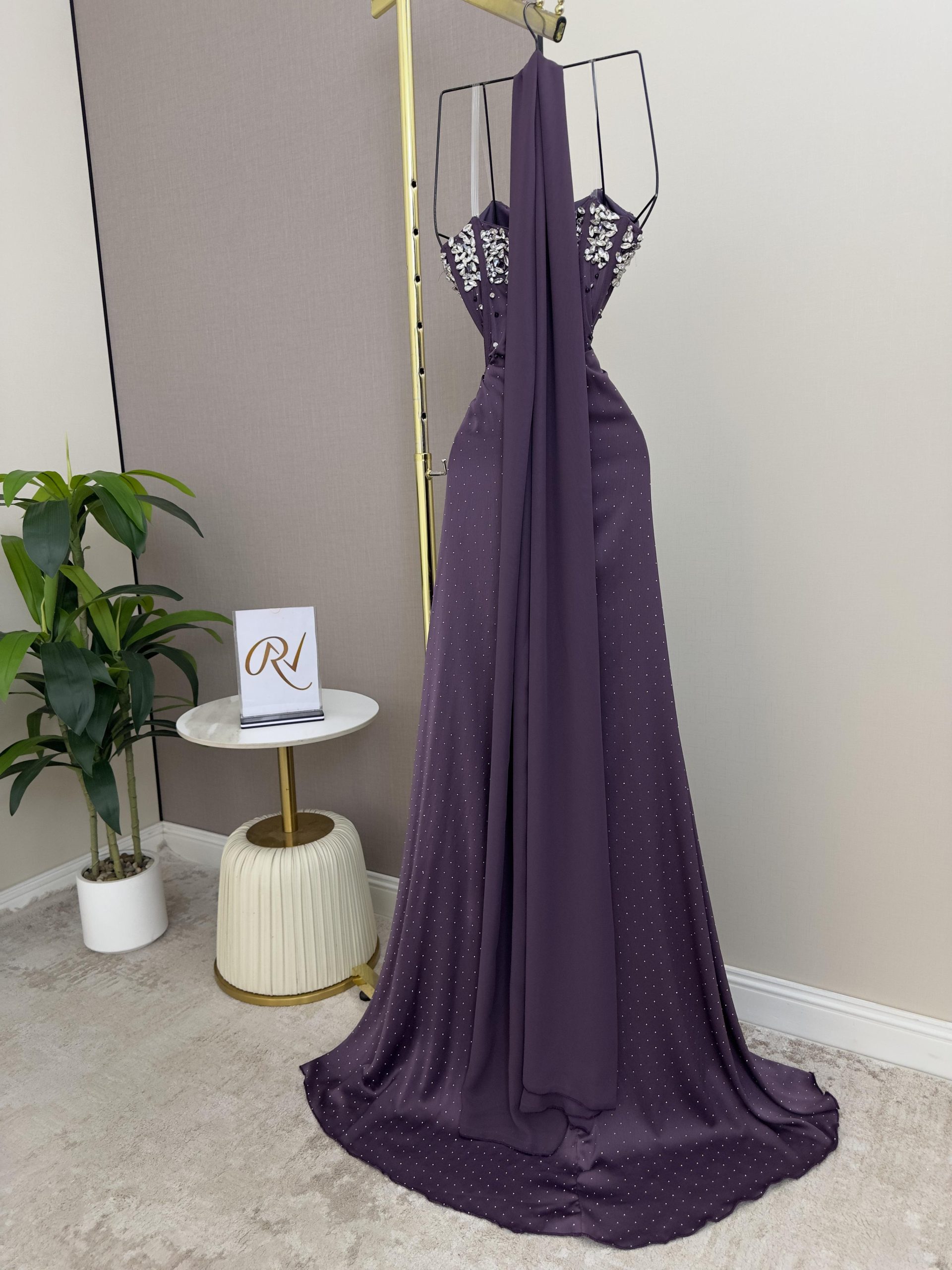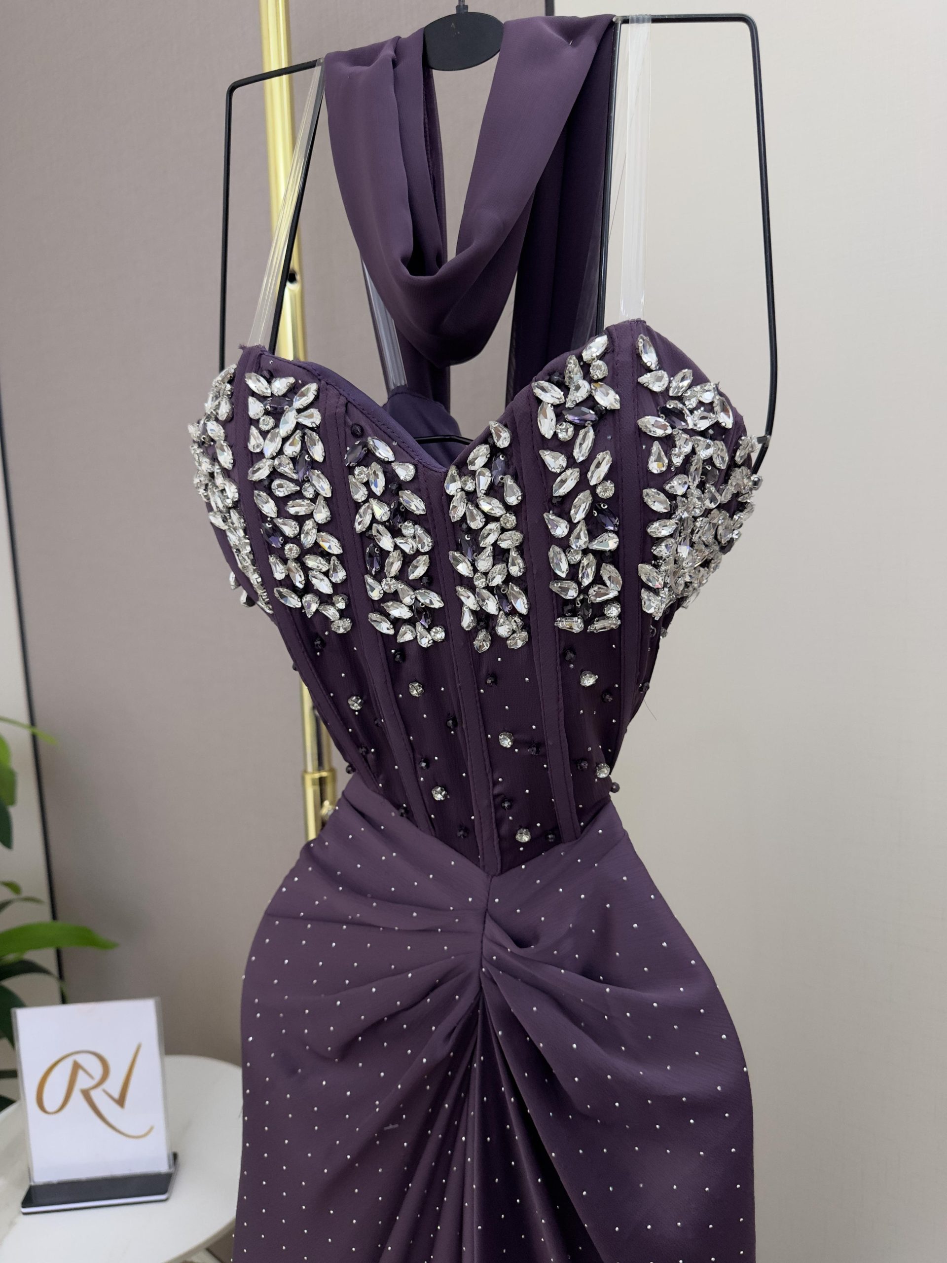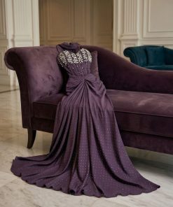 فستان سهرة موف ملكي بتصميم كورسيه مطرز وانسيابية فاخرة – متجر روزيتا السعودية