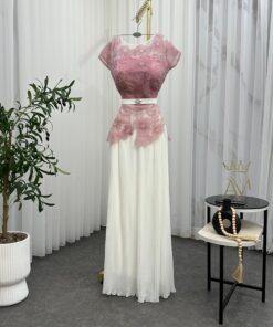 الخامه:جورجيت بليسه + خامة الورود المطرز + حزام متحرك