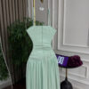يُعد هذا الفستان الطويل بلونه الأخضر النعناعي من أحدث صيحات موضة 2025، حيث يجمع بين البساطة والرقي في تصميم واحد مثالي لكل المناسبات الراقية. يتميز الفستان بتصميم كورسيه ضيق عند الخصر يُبرز أنوثة القوام، مع تنورة واسعة من الشيفون الناعم تضفي لمسة من الأناقة والإنسيابية.