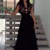 فستان سهرة نبيتي بدون أكمام بتنورة ورود بارزة وتصميم أميري