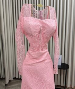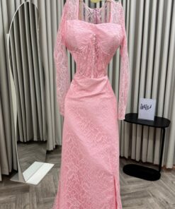 فستان سهرة وردي دانتيل
