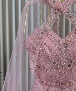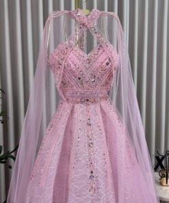فستان سهرة وردي فخم مطرّز