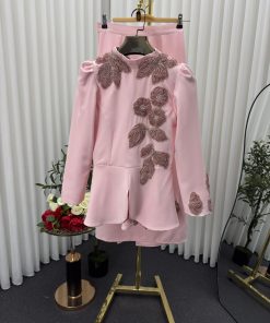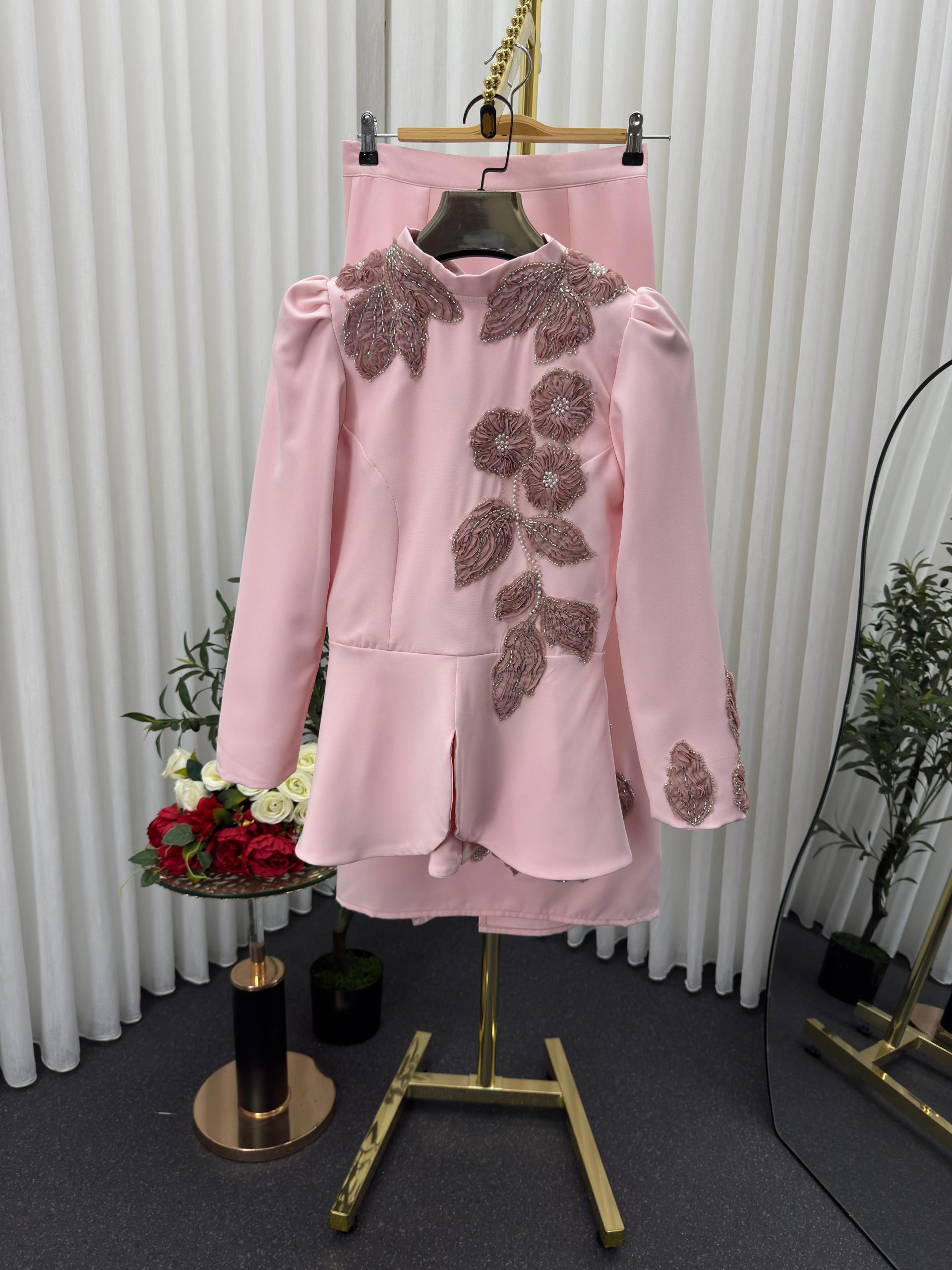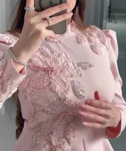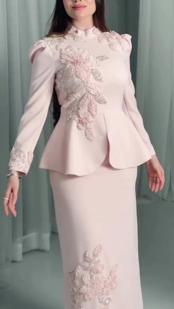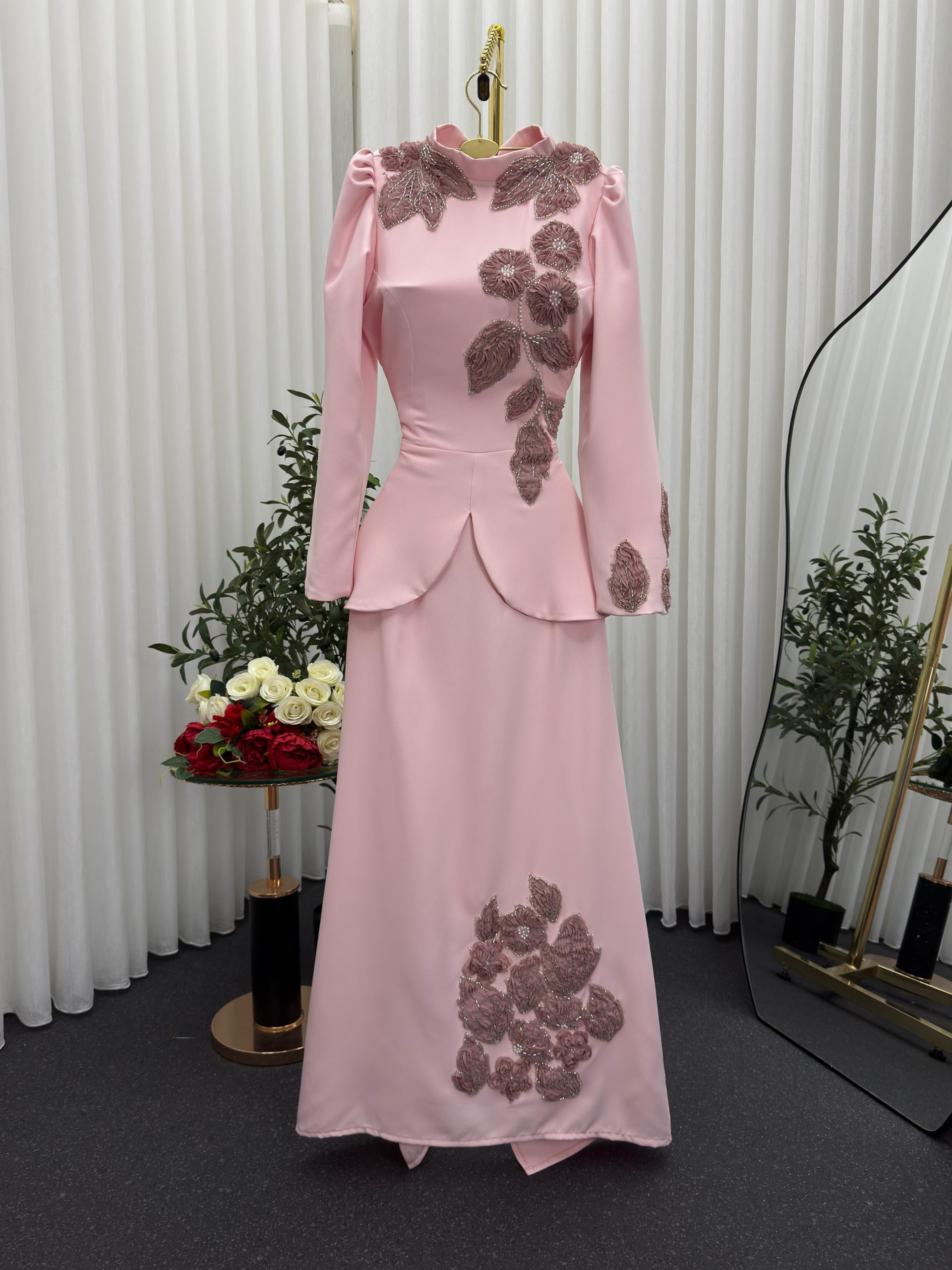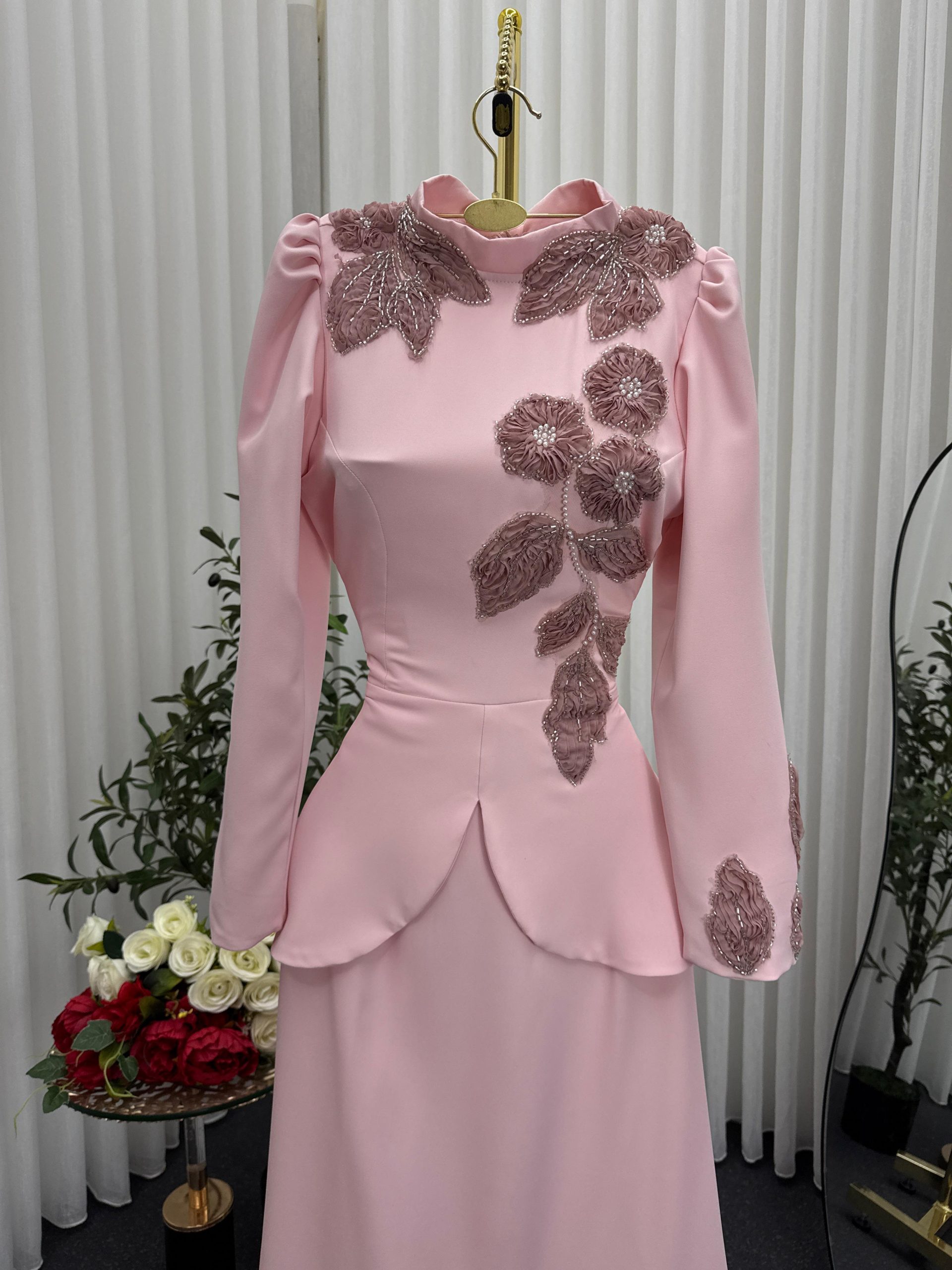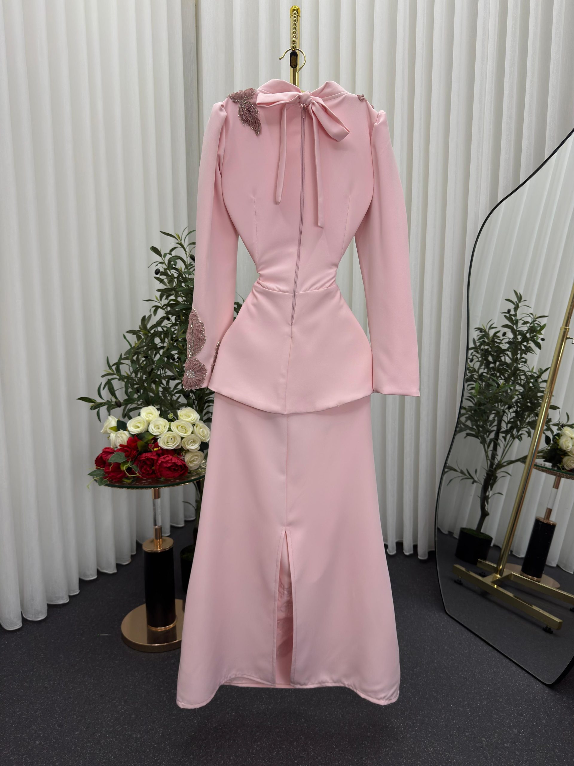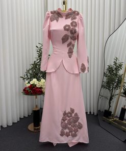 فستان سهرة وردي قطعتين