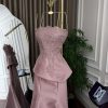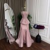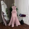 فستان سهرة وردي مزين بتفاصيل لؤلؤية