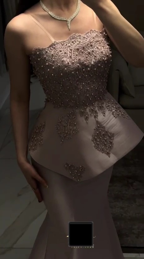 الفستان يأتي بلون وردي هادئ يضفي عليه لمسة من الأنوثة والرقة، مما يجعله مناسبًا لحفلات الزفاف، السهرات، أو أي مناسبة خاصة. الجزء العلوي مزين بتفاصيل لؤلؤية لامعة تتناغم بشكل رائع مع التنورة المنفوشة التي تضفي على الفستان حركة وأناقة استثنائية.