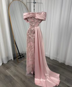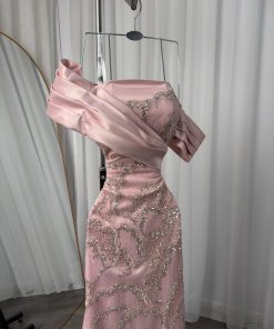 فستان سهرة وردي مطرز لامع من روزيتا – أناقة لا مثيل لها