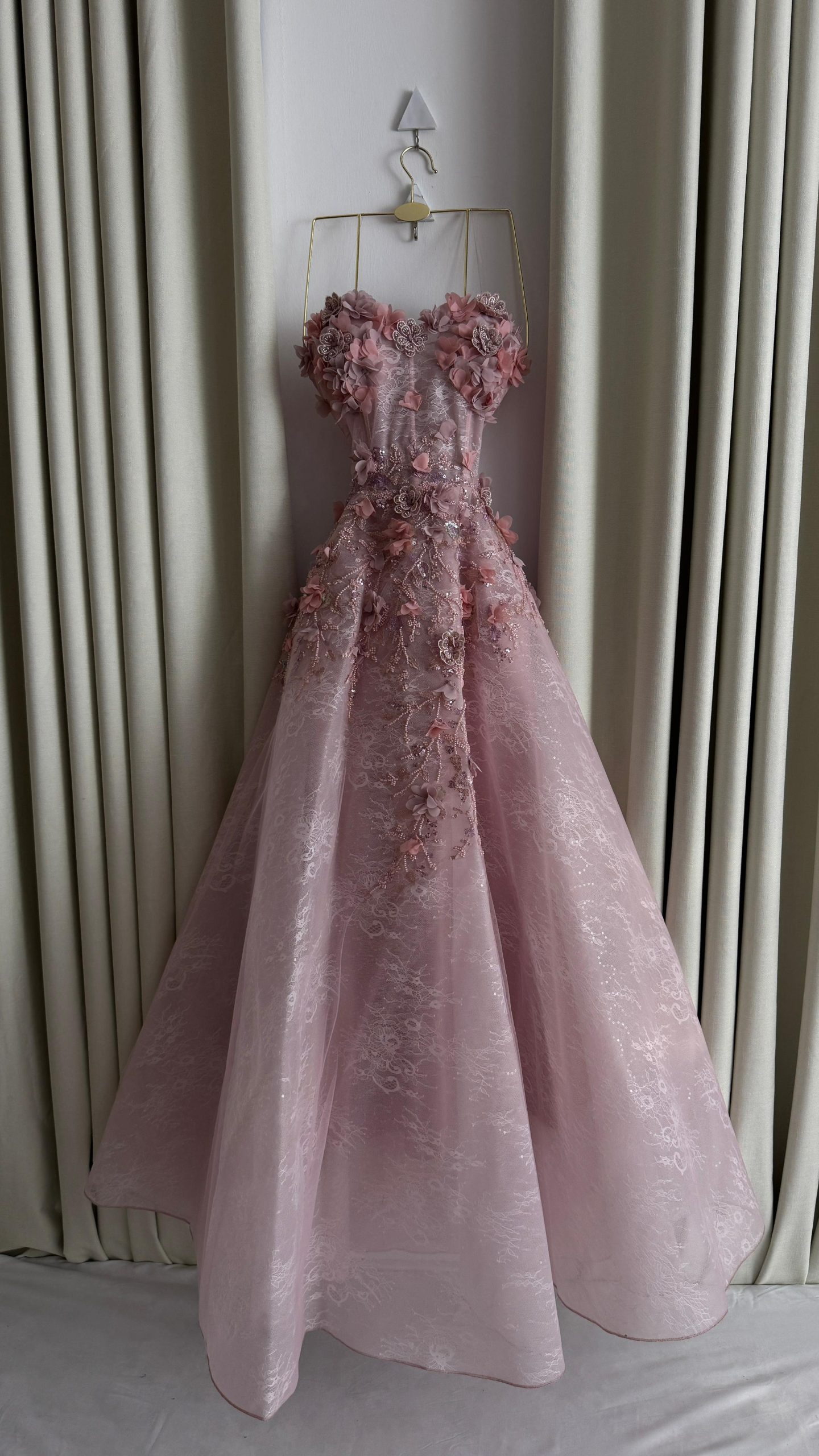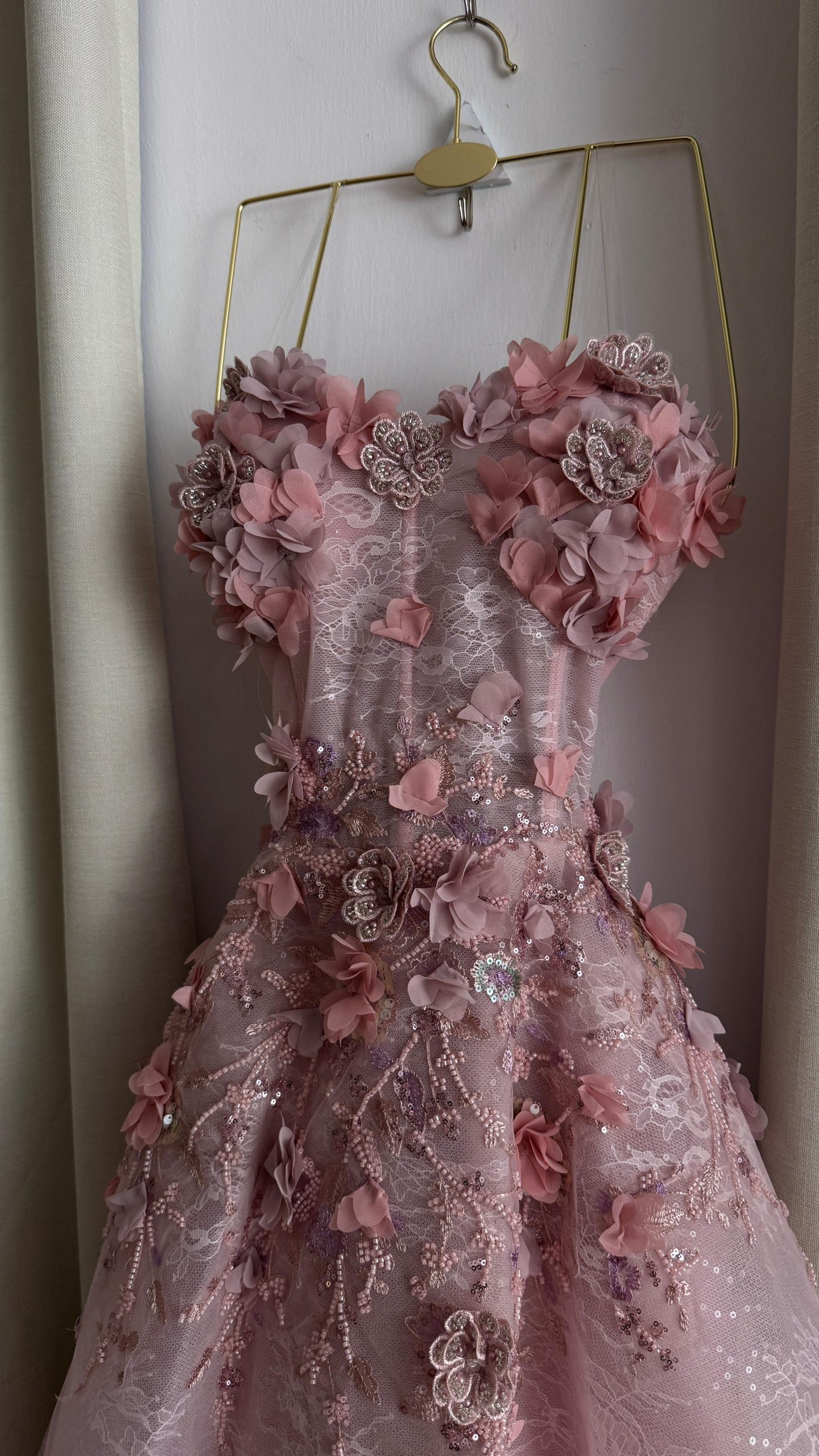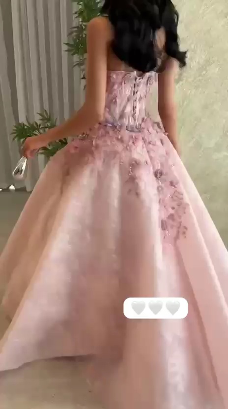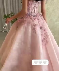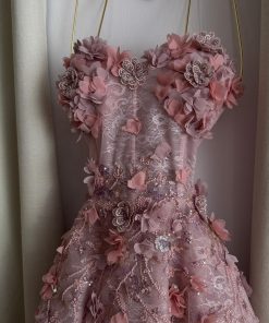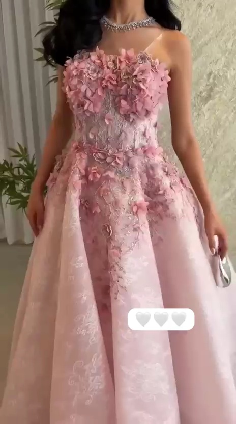 فستان سهرة وردي فاخر بتطريز ثلاثي الأبعاد وتصميم منفوش – متجر روزيتا السعودية