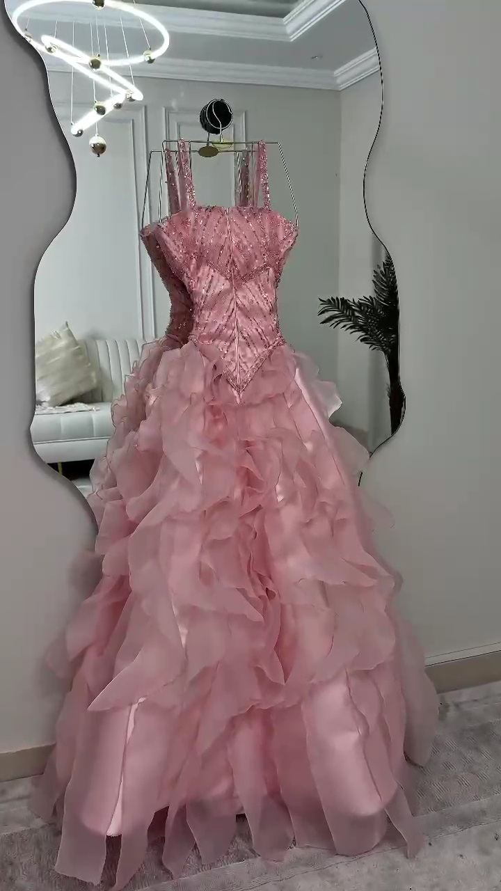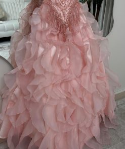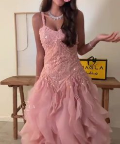 فستان سهرة وردي منفوش فاخر