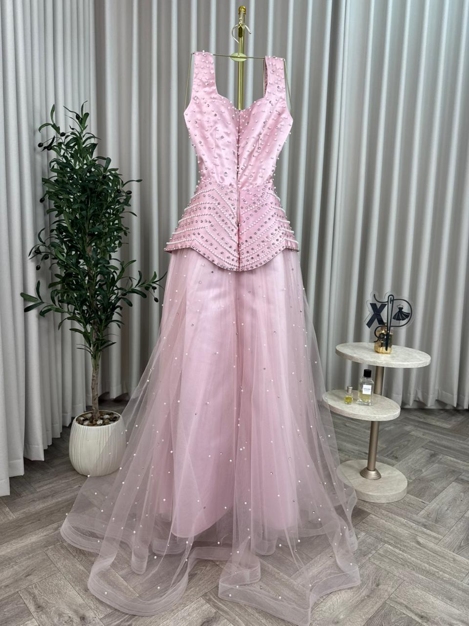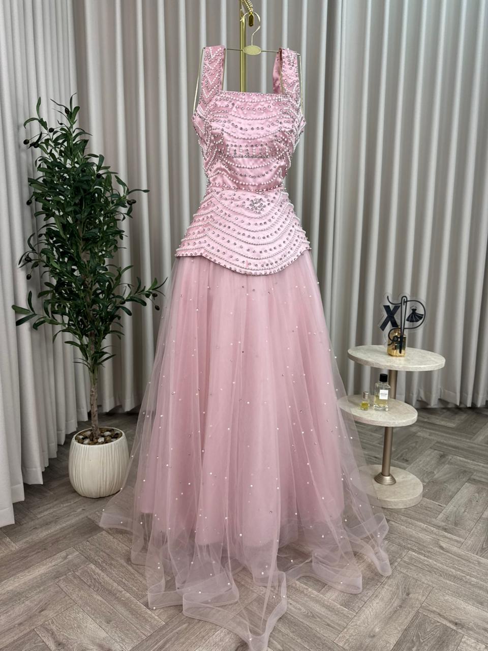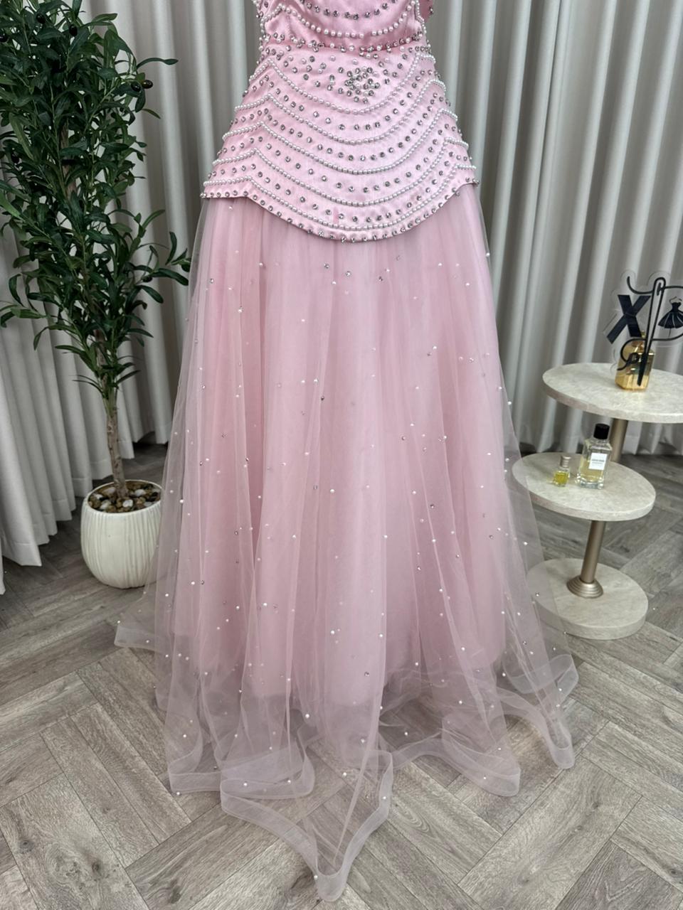 فستان سهرة وردي من روزيتا – أنوثة ناعمة بفخامة ملكية