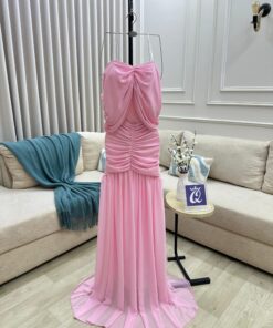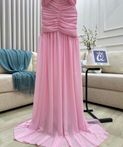 إذا كنتِي تبحثين عن فستان يلفت الأنظار ويعكس أناقتك في أي مناسبة، فهذا الفستان  هو الخيار الأمثل. تصميمه الضيق من الأعلى مع القصة المنسدلة بأسلوب “حورية البحر” يعطي جسمك شكلًا ممشوقًا، بينما اللون الوردي الفاتح يضفي لمسة أنثوية ساحرة. شاهدي كيف يدمج بين الرقة والفخامة في آنٍ واحد.