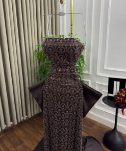 استعدي للتألّق بإطلالة ساحرة مع فستان سهره بني فاخر بتصميم أنيق وتفاصيل فريدة تجمع بين النعومة والفخامة. ليمنحكِ حضورًا راقيًا في جميع مناسباتك المميزة، حيث يجمع بين أحدث صيحات الموضة وروعة التفاصيل المتقنة.