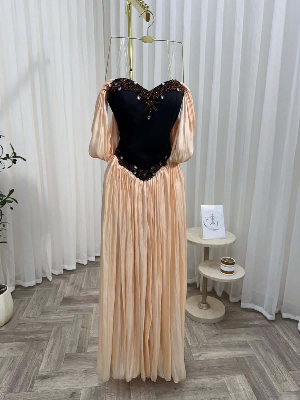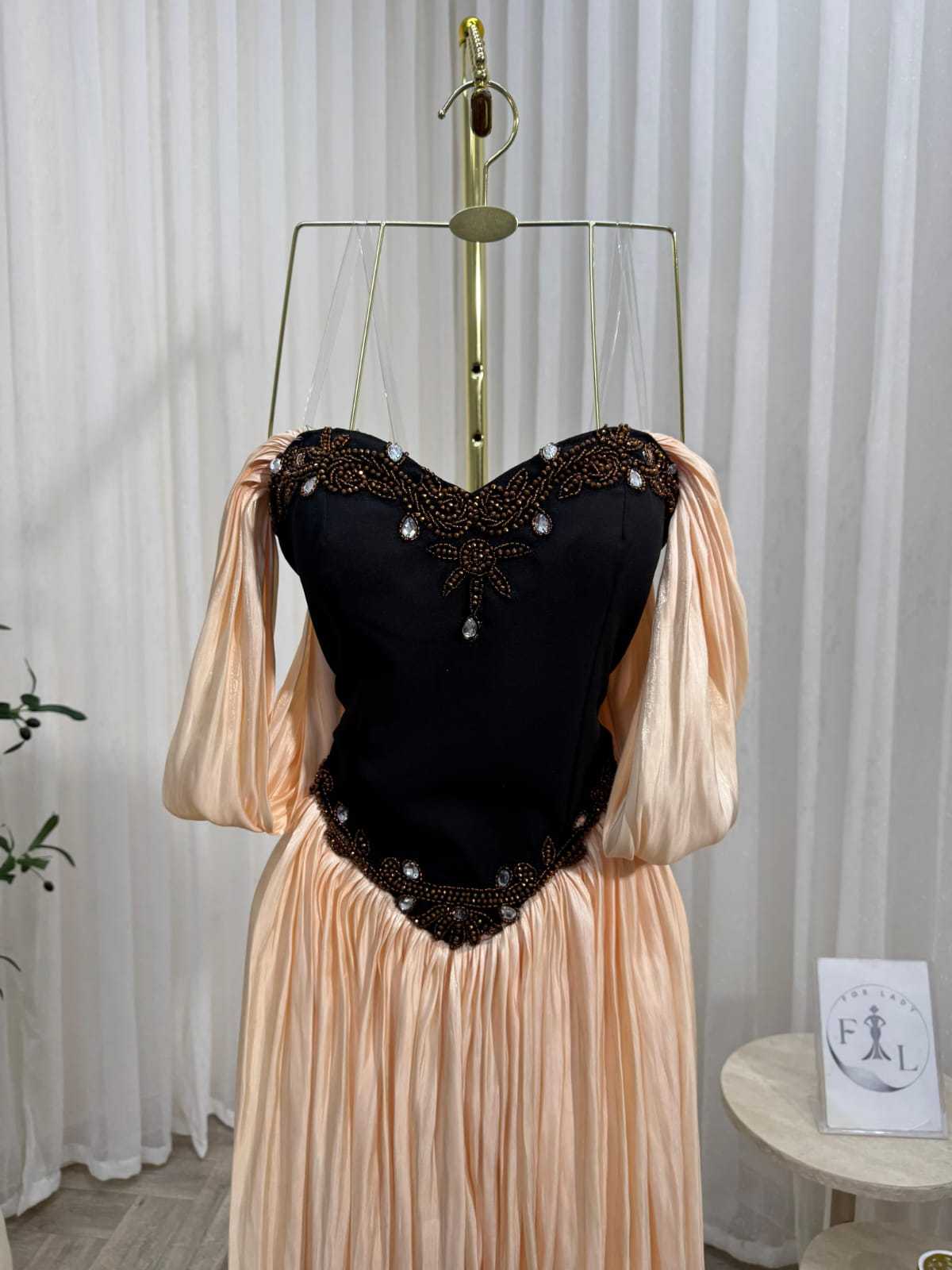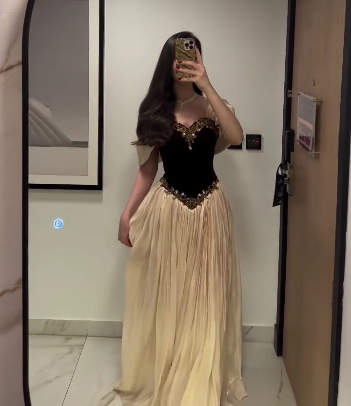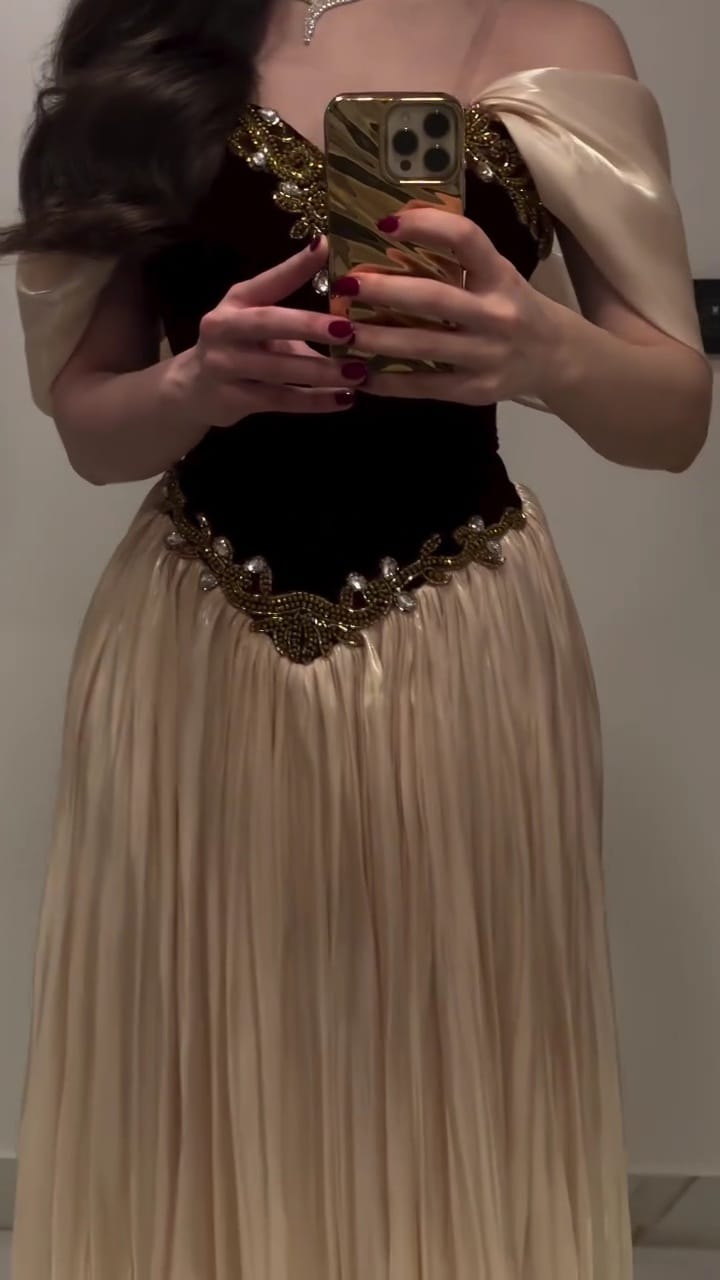 فستان سهره لون بيج فى اسود