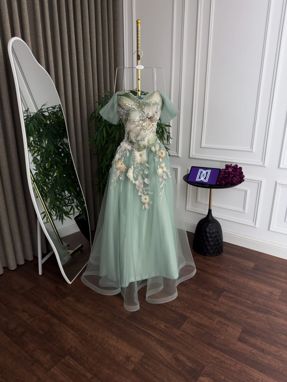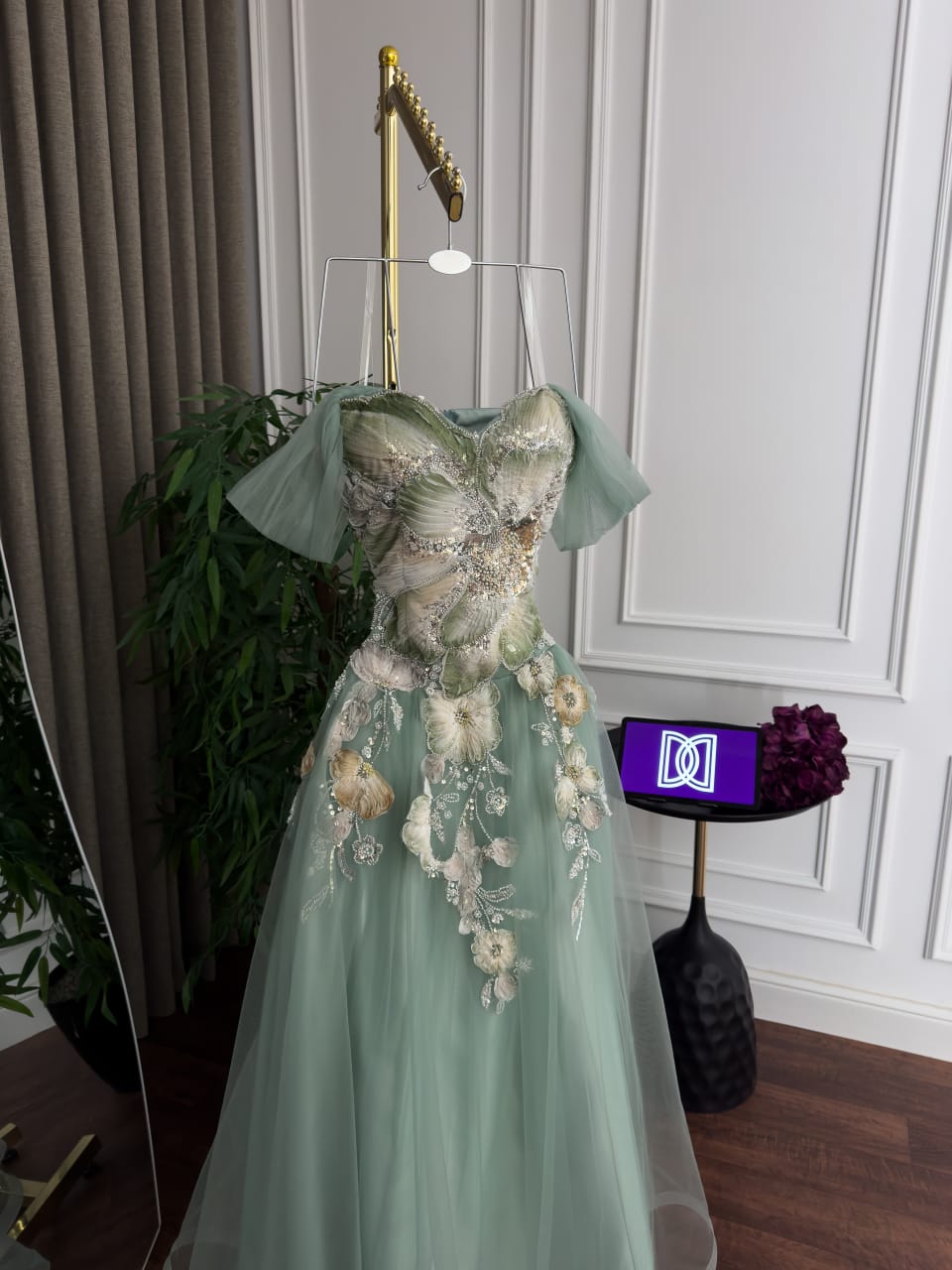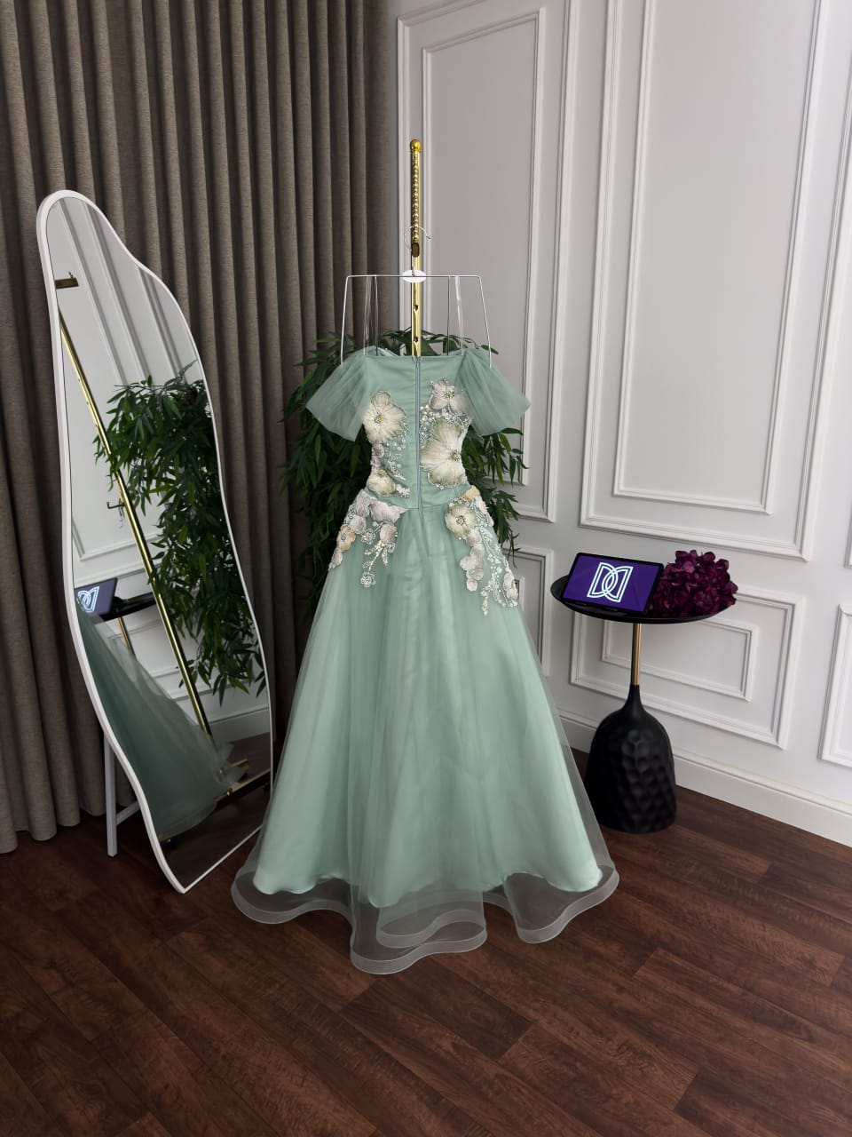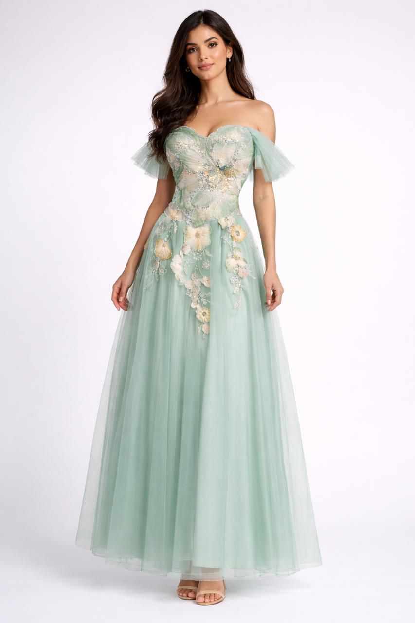 فستان تل كلفه تطريز