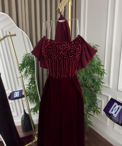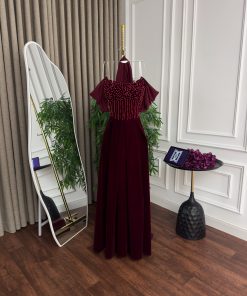 فستان سهره جوخ وشيفون شال كلفه تطريز لول