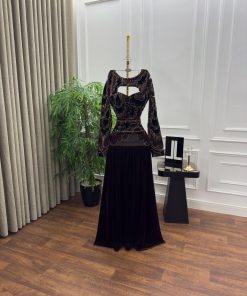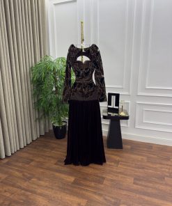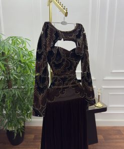 فستان صدريه قطيفه تطريز خرز ولول بطانه باربي تنوره مخمل كوري كلوش