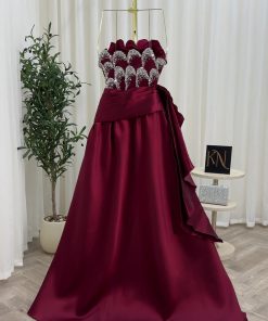 الخامة: قماش ساتان فخم يضفي بريقًا ونعومة على إطلالتكِ.استمتعي بإطلالة رائعة مع فستان روزيتا البوردو الفاخر وتميزي في كل مناسبة.