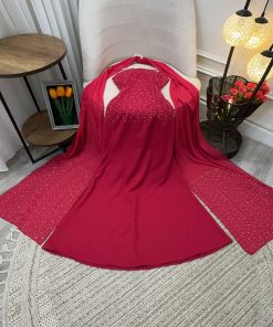 الخامه: باربي + شيفون جورجيت + تطريز يدوي كرستال + تطريز فصوص