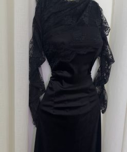 فستان مخمل دانتيل أسود