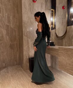 فستان ملكي أخضر بتطريز فاخر