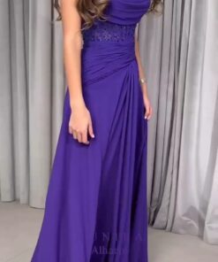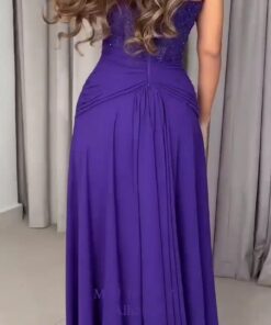تألقي بالأرجواني الملكي: فستان سهرة أنثوي بتفاصيل جذابة
