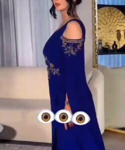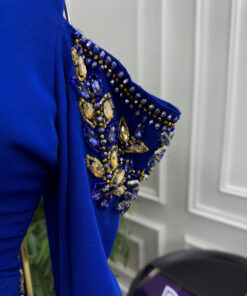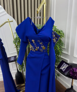 فستان ملكي فاخر باللون الأزرق الملكي مع تطريز ذهبي – رؤية أنثوية