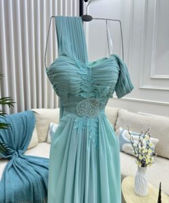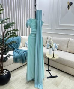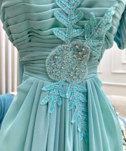 فستان ملكي فاخر فيروزي ملكي واحد ولمسات ملكية