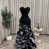 فستان سهرة أسود أنيق من متجر روزيتا | تصميم فاخر بطبقات ورود فخمة
